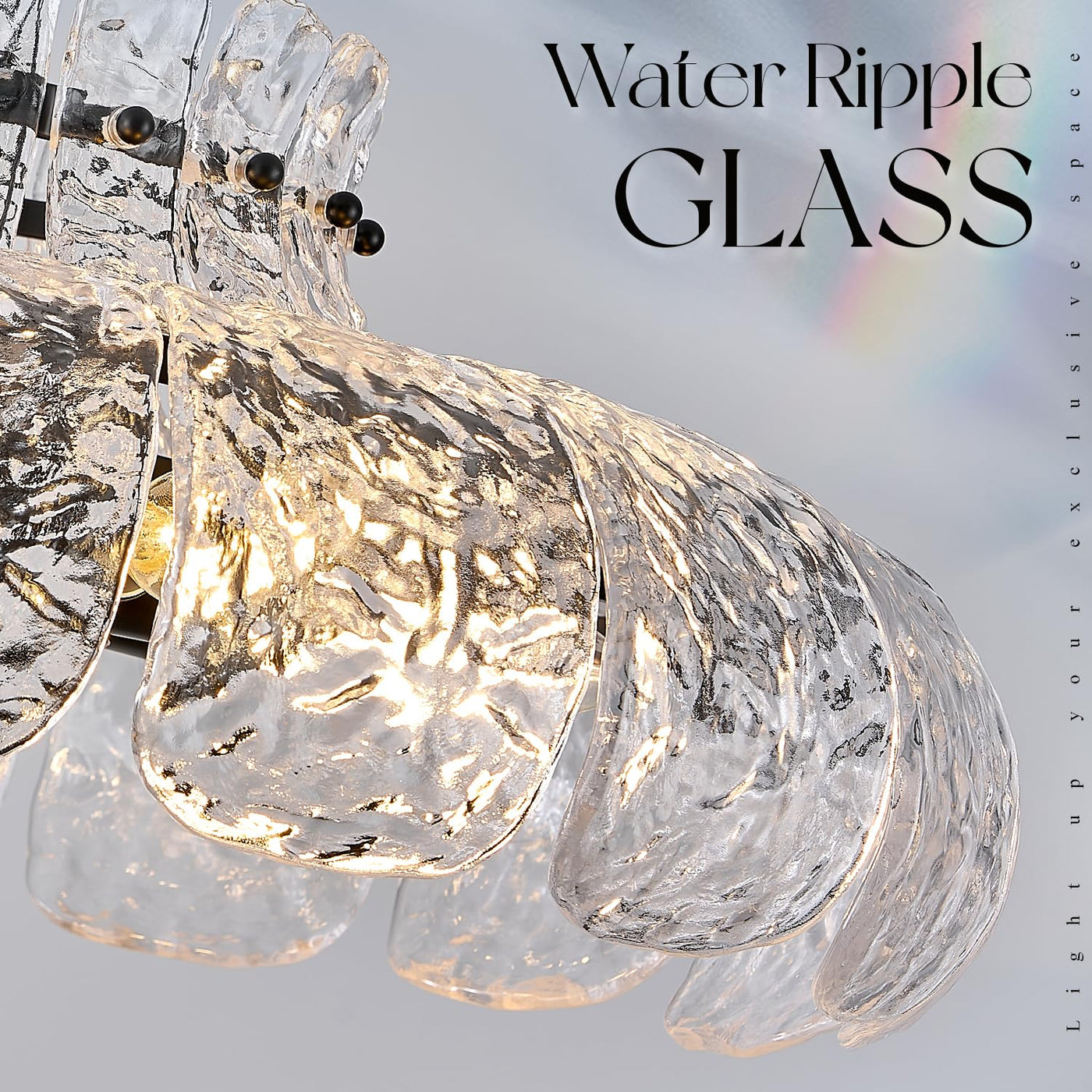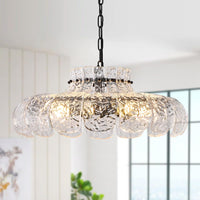 Poemoon Black Glass Chandelier 8-Light Luxury Water Ripple Glass Chandelier Lighting 21.6'' Modern Hanging Light Fixture For Liv