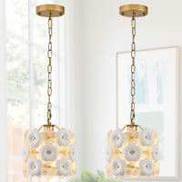 Poemoon Modern Flower Small Pendant Lighting 2-Pack Gold Glass Pendant Light With White Ceramic Flowers 1-Light For Kitchen Isla