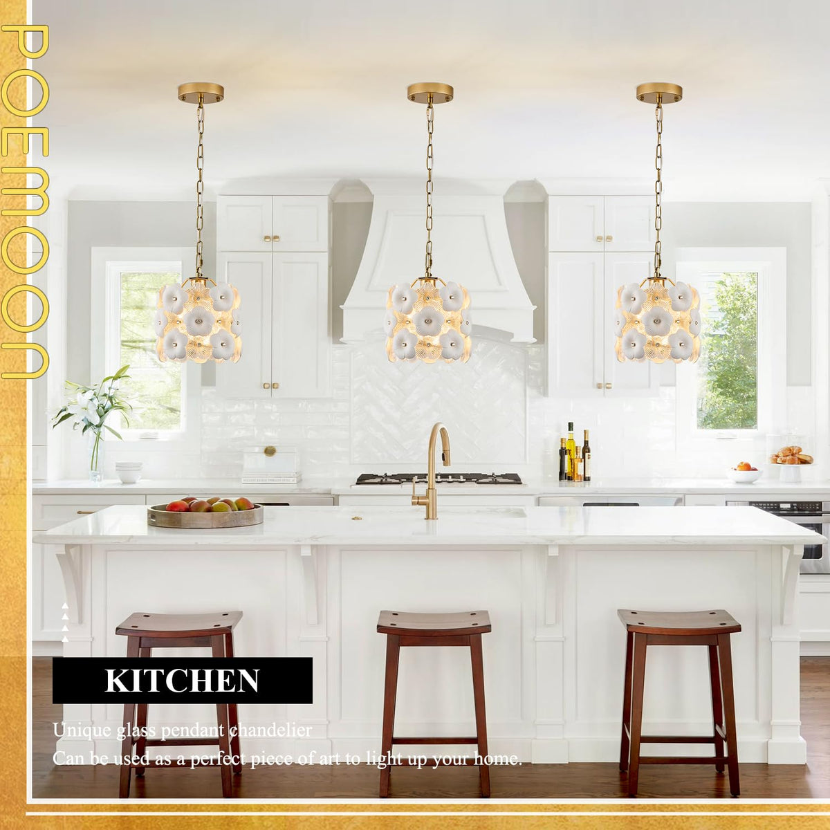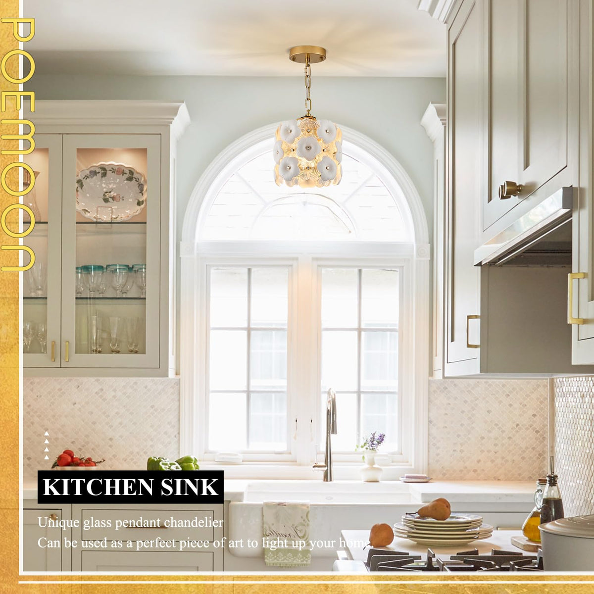 Poemoon 2-Pack Gold Glass Pendant Light Modern Contemporary Flower Small Ceiling Pendant Lighting For Kitchen Island Sink Dining Room Bedroom Hallway, E26