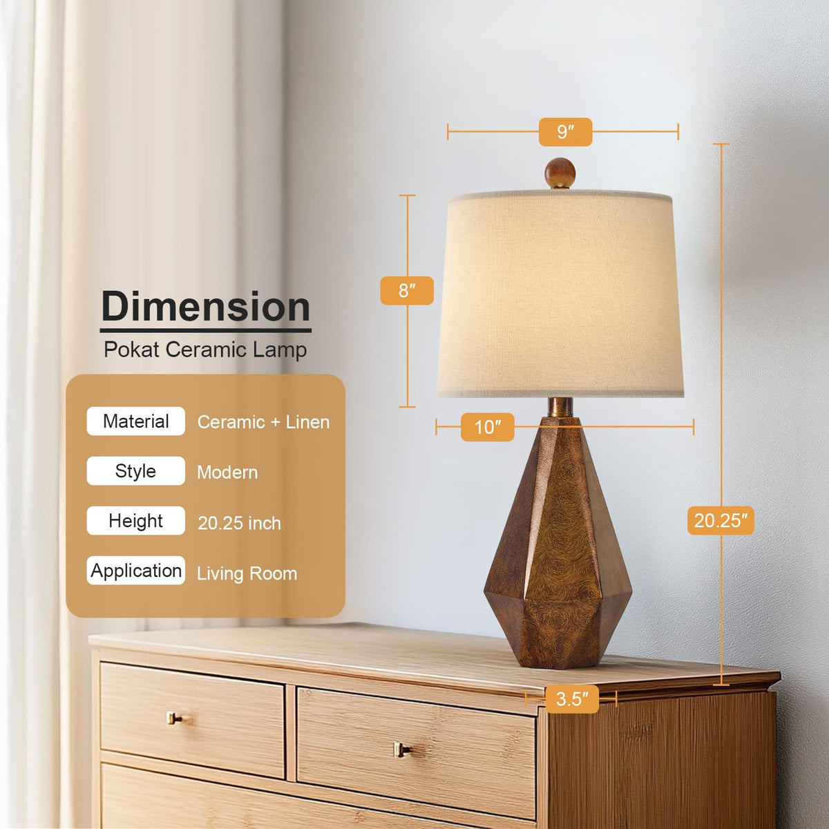 Pokat 20.25'' Farmhouse Table Lamps Set Of 2 For Night Stands, Vintage Bedroom Lamps For Bedroom Living Room, Retro Bedside Lamp