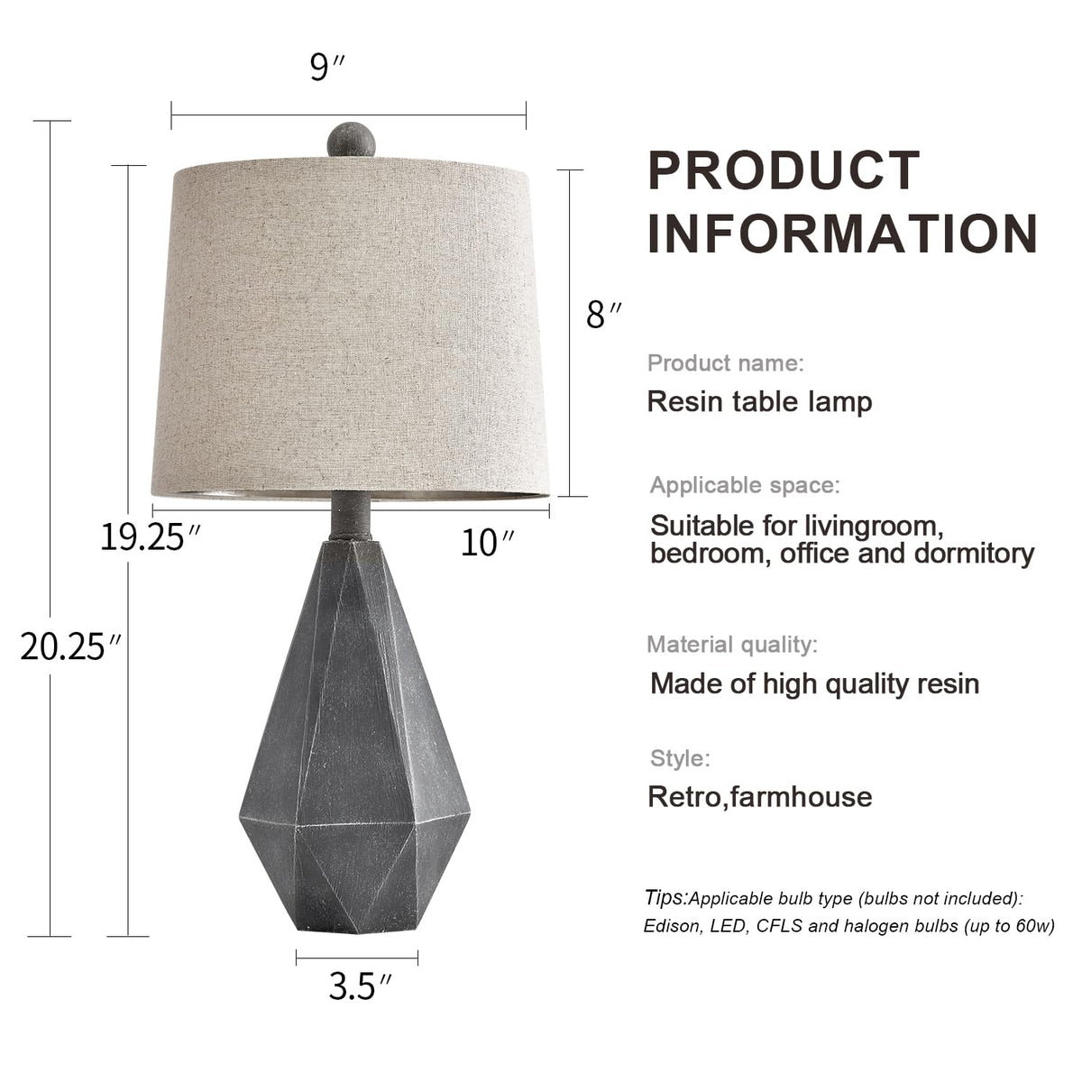 Q: What type of bulb is compatible with the PoKat Rustic Farmhouse Table Lamp?A: The PoKat Rustic Farmhouse Table Lamp uses one 60-watt maximum bulb with an E26 socket, compatible with various halogen bulbs, LED, or CFL light bulbs. Please note that the bulb is not included with the purchase.