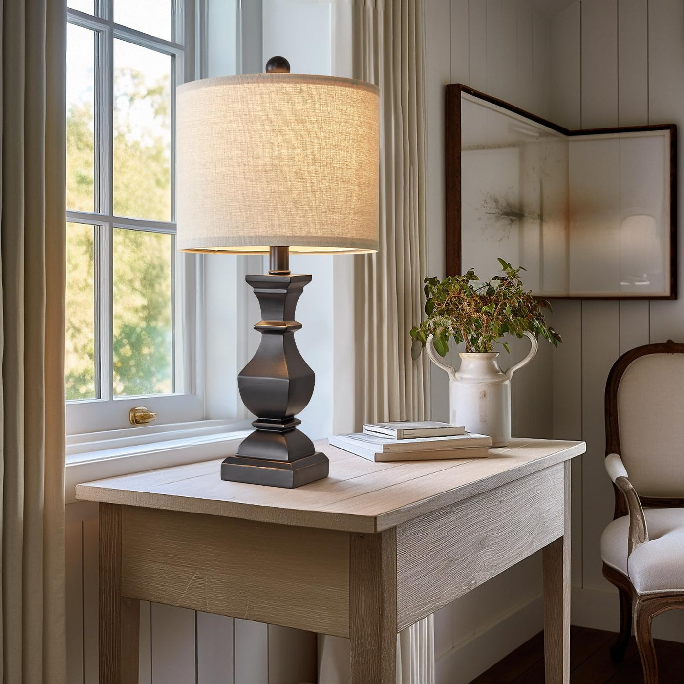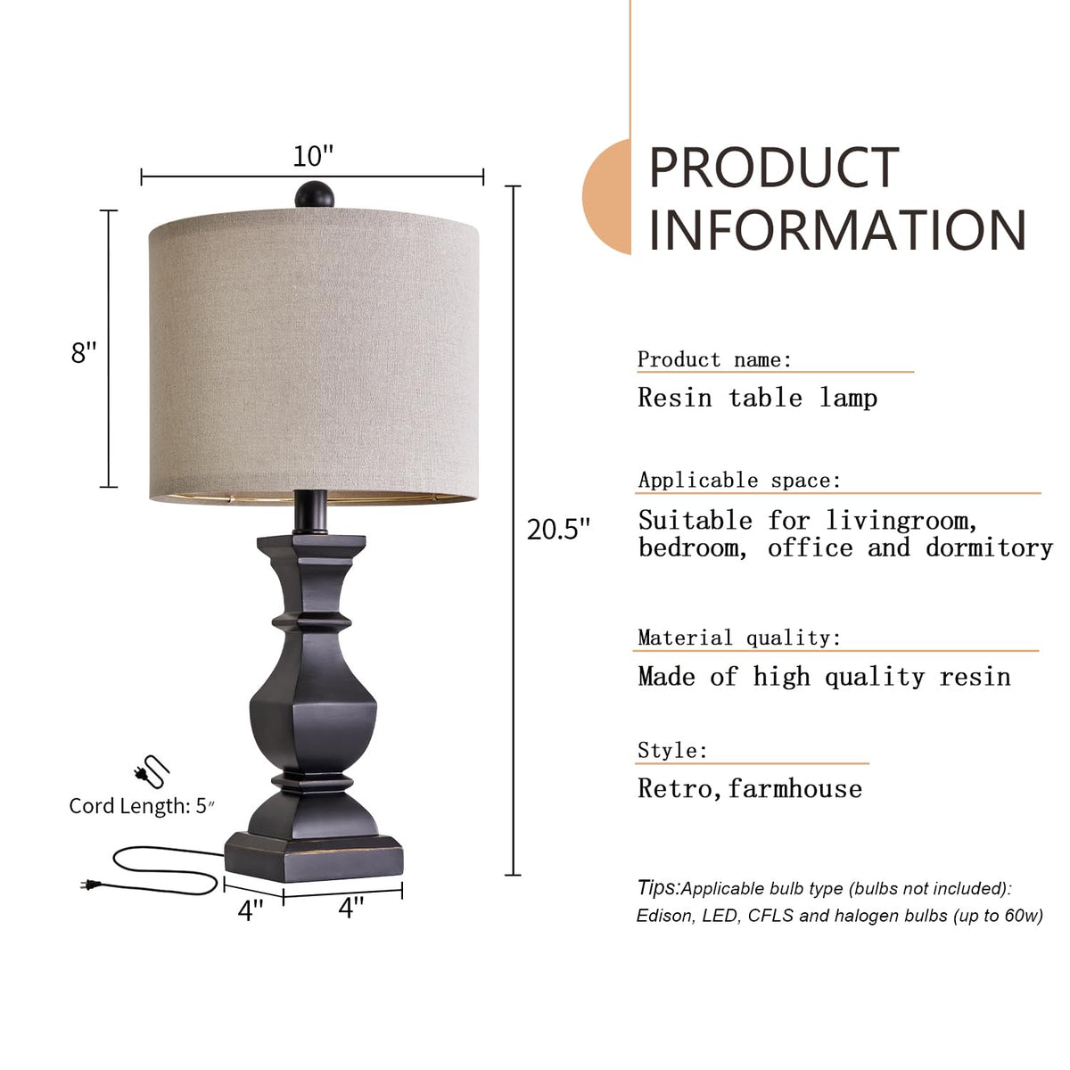 Pokat 20.5'' Retro Table Lamps For Bedrooms Set Of 2 Nightstand Lamps With Linen Lampshade Farmhouse Lamps For Bedroom Living Room Rustic Resin Classic Bedside Lamps