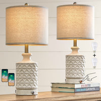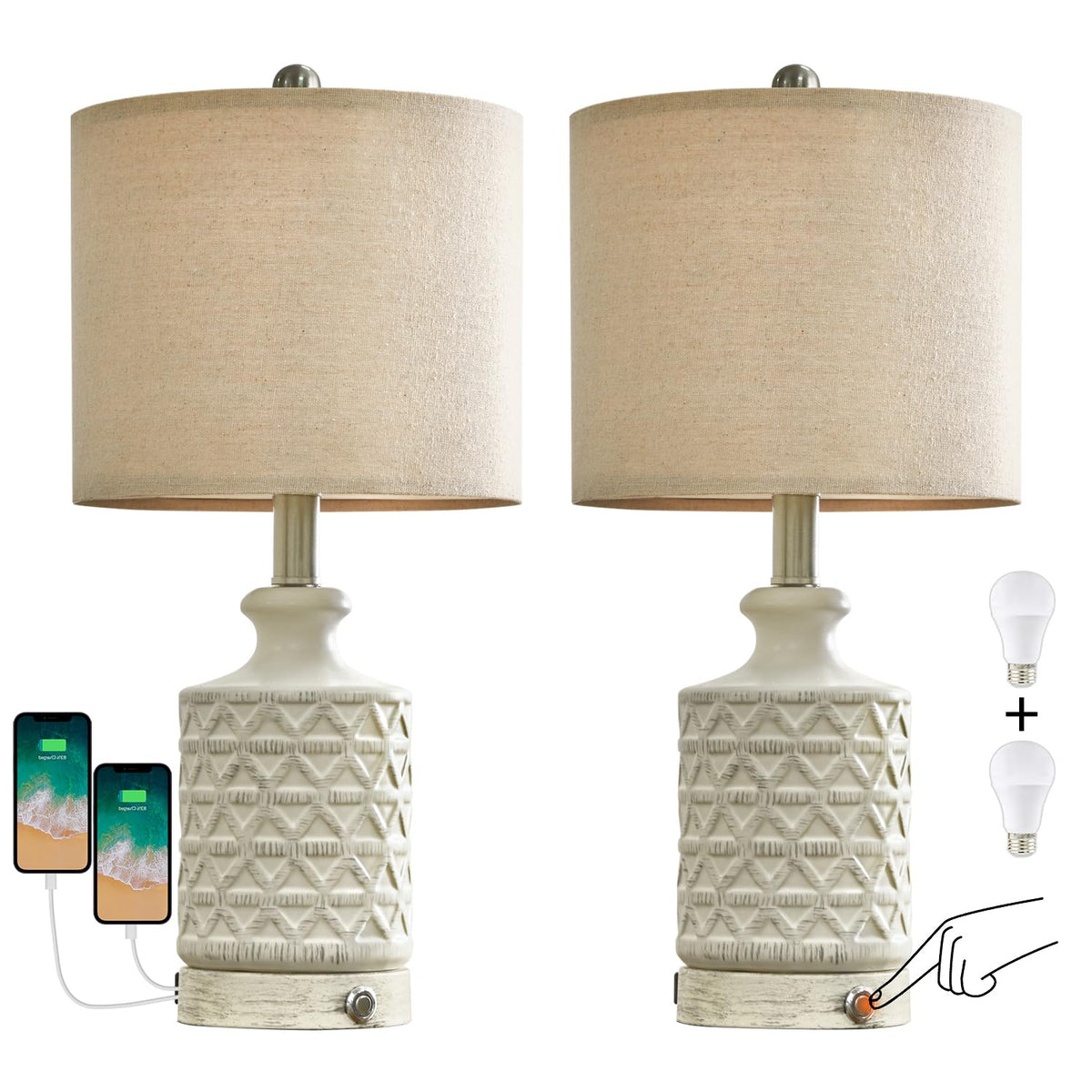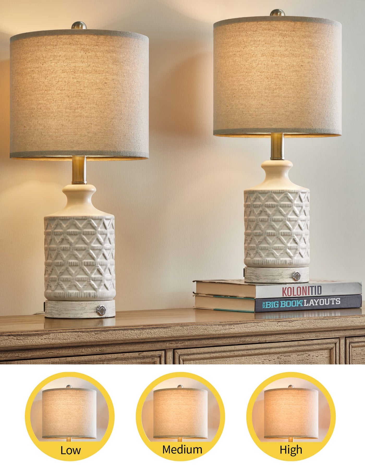 Pokat 20" Ceramic Farmhouse Lamps Set Of 2, 3 Way Dimmable Nightstand/Table Lamps, White