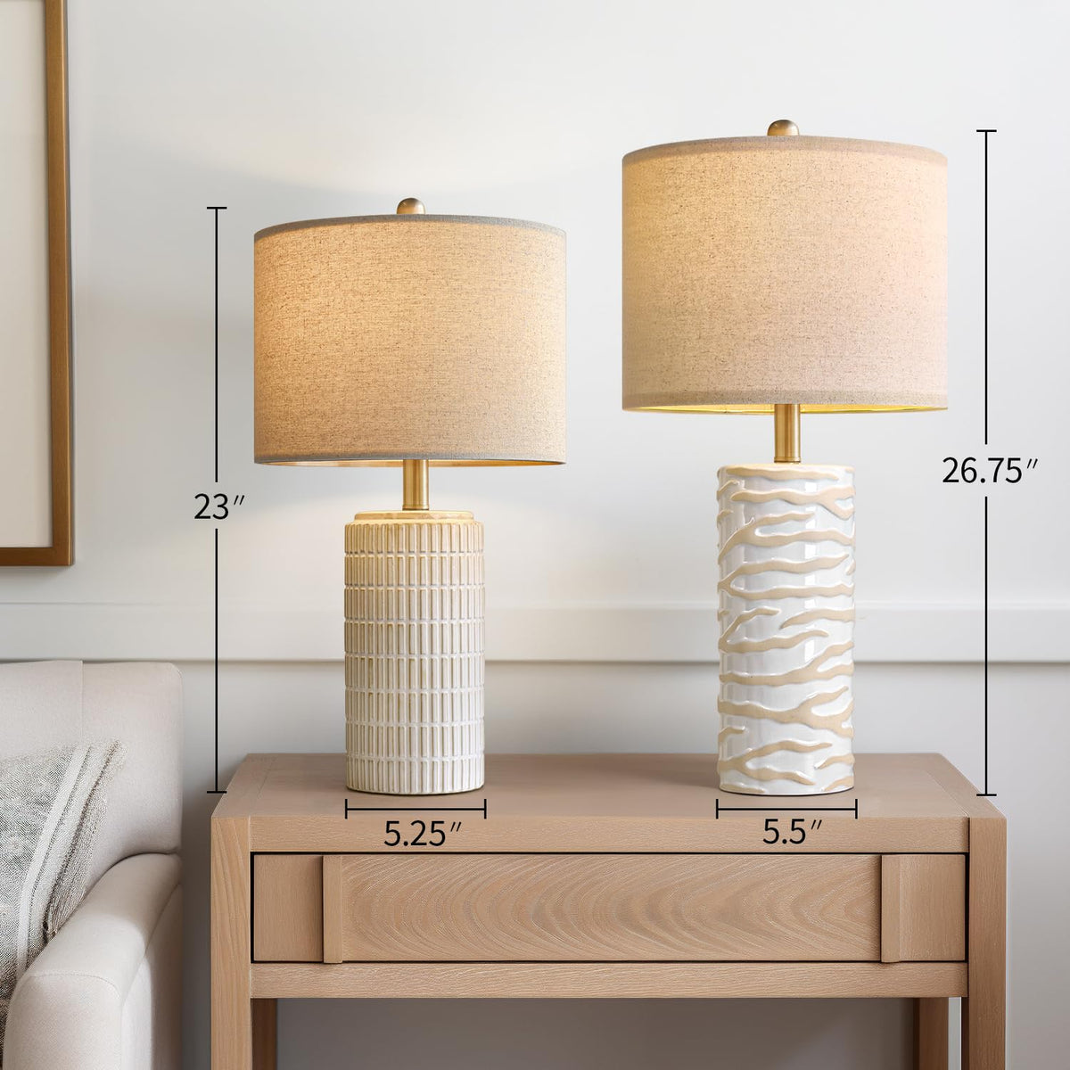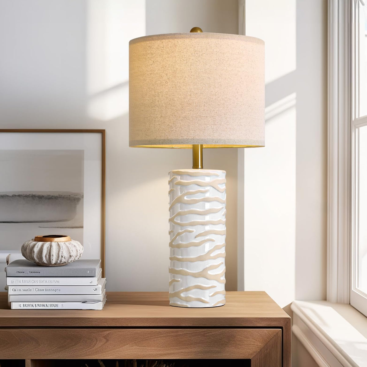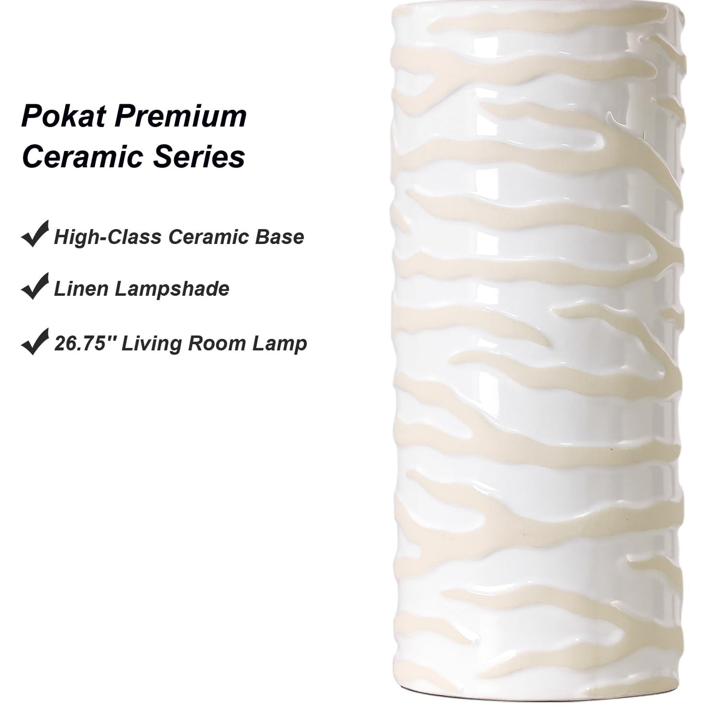 Pokat 26.75'' Ceramic Table Lamp, Modern Lamp For Living Room, White Lamp For Bedroom, Night Stands, Farmhouse Bedside Nightstan