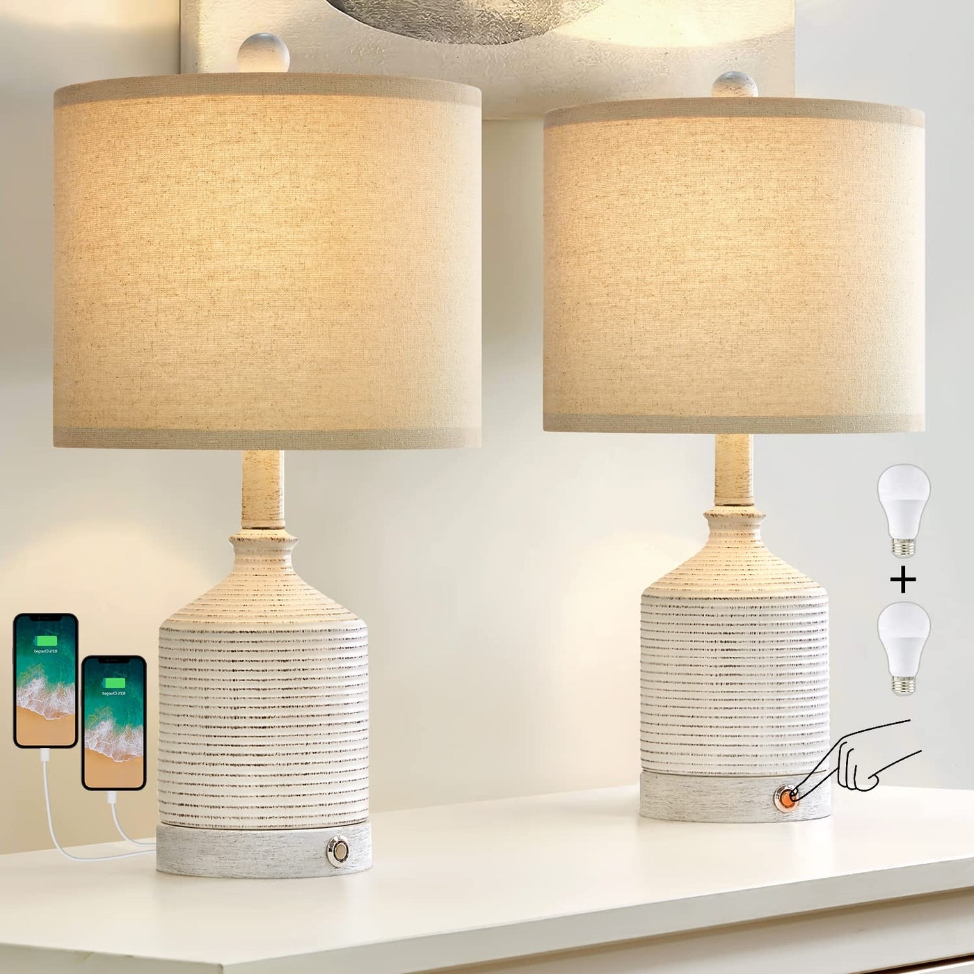Pokat 3-Way Dimmable Touch Bedside Table Lamps - Usb Farmhouse Nightstand Lamp Set Of 2, Bulb