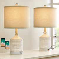 Enhance your home with the PoKat 20’’ Farmhouse 3-Way Dimmable Touch Ceramic Table Lamp Sets of 2, a stylish and functional lighting solution that meets all your bedside and living room needs.