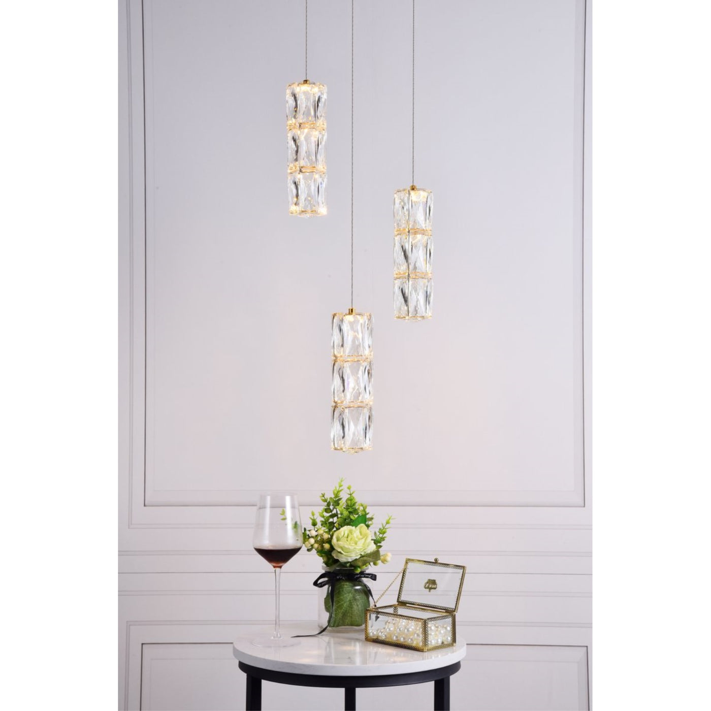 The Polaris collection is the epitome of cool in lighting, because each of the fixtures has rectangular, elegant-cut crystals that look like ice cubes, gracefully suspended from a stainless-steel base with a bright gold finish. Designed for rooms with higher ceilings, these fixtures are definitely stylistic attention-getters.