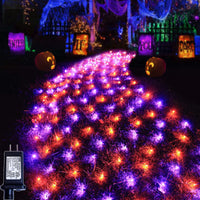 Pooqla 21Ft X 5Ft Halloween Decoration Net Lights, 360 Led Outdoor Mesh String Lights, Connectable Purple Orange Twinkle Lights 8 Modes For Bushes Yard Garden Party Christmas Thanksgiving Decor