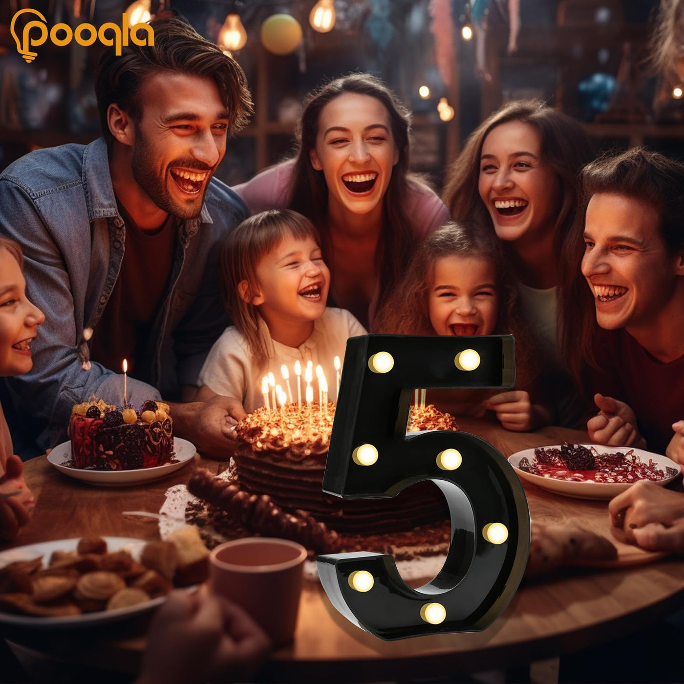 Pooqla Decorative Led Light Up Number Letters, Black Plastic Marquee Number Lights Sign For 5Th 15Th 50Th Birthday Party Wedding Decor Battery Operated Black Number 5