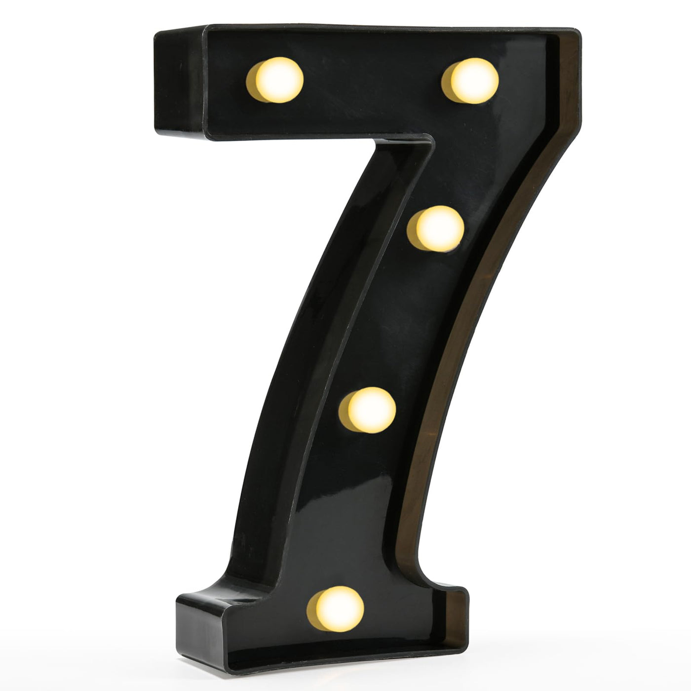 Pooqla Decorative Led Light Up Number Letters, Black Plastic Marquee Number Lights Sign for 7th 17th 70th Birthday Party Wedding Decor Battery Operated Black Number 7