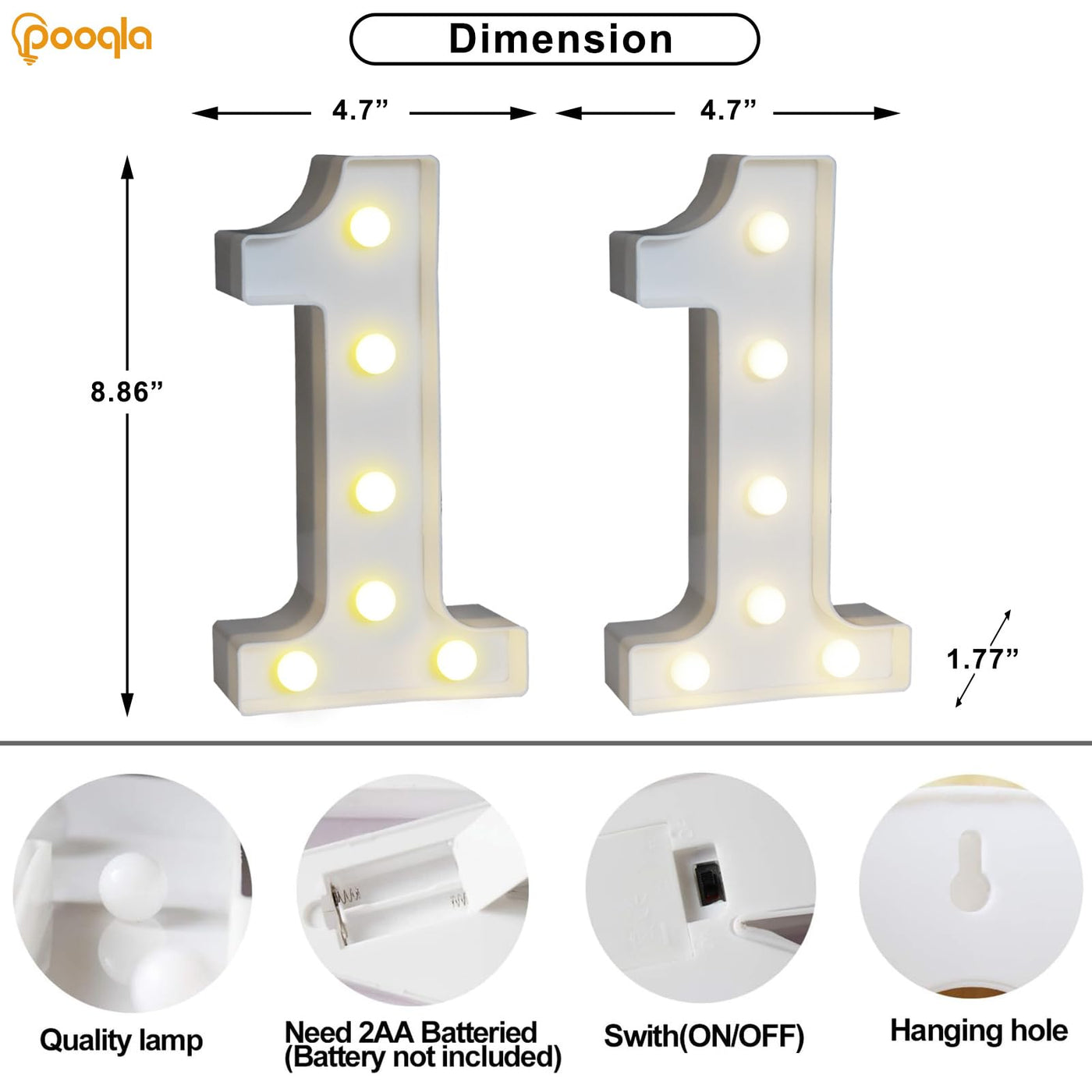 Pooqla Decorative Led Light Up Number Letters, White Plastic Marquee Number Lights Sign For 11Th Birthday Party Wedding Decor Battery Operated Number (11)