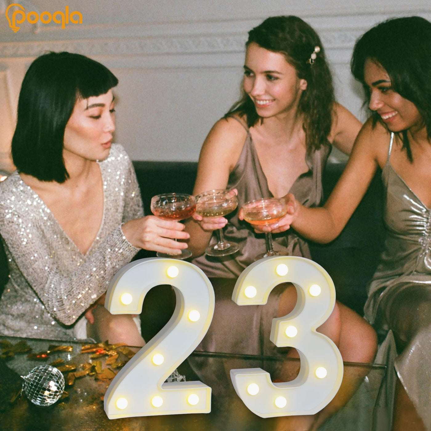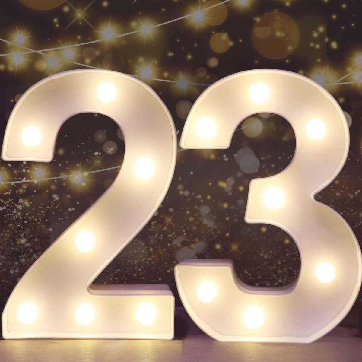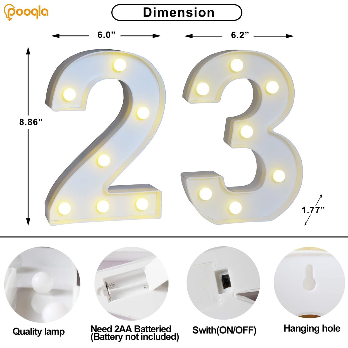 Pooqla Decorative Led Light Up Number Letters, White Plastic Marquee Number Lights Sign For 23Th Birthday Party Wedding Decor Battery Operated Number (23)