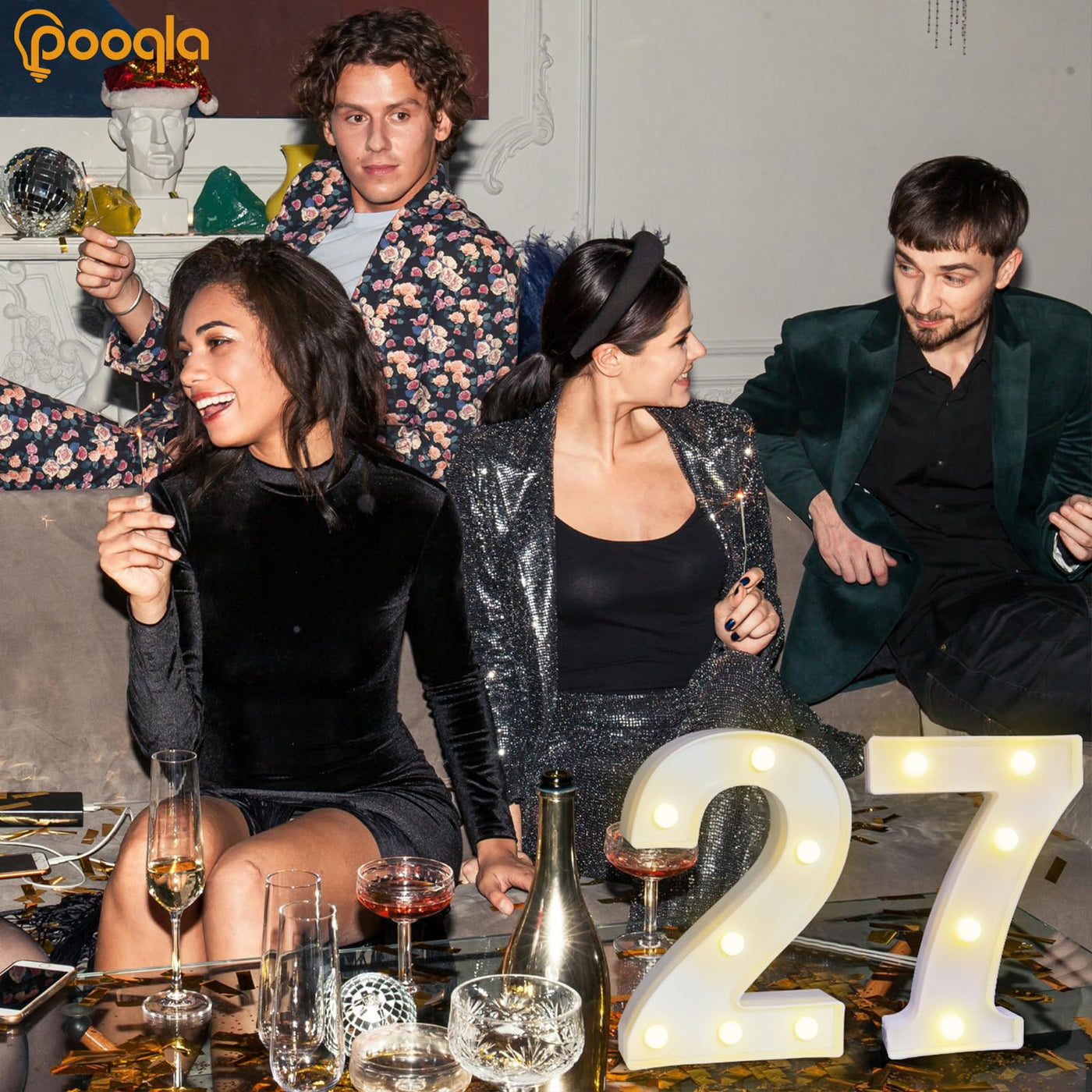 Pooqla Light Up Numbers, Lighted Marquee Number Sign for 27th Birthday Party Decor, Battery Powered LED Number Lights for 27 Party Decor, Lights Sign for Wall Home Anniversary Decor, Number 27
