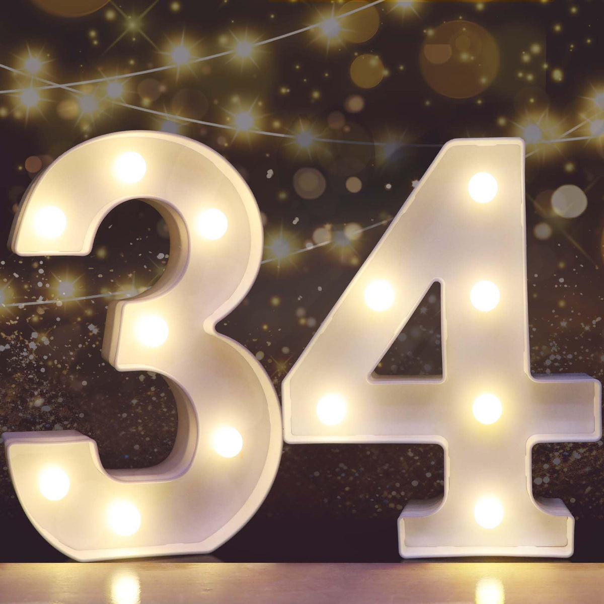 Pooqla Light Up Numbers, LED Number Lights for 34th Birthday Party Decor, Battery Powered Lighted Marquee Number Sign for 34 Party Decor, Lighted Numbers for Wall Home Anniversary Decor, Number 34