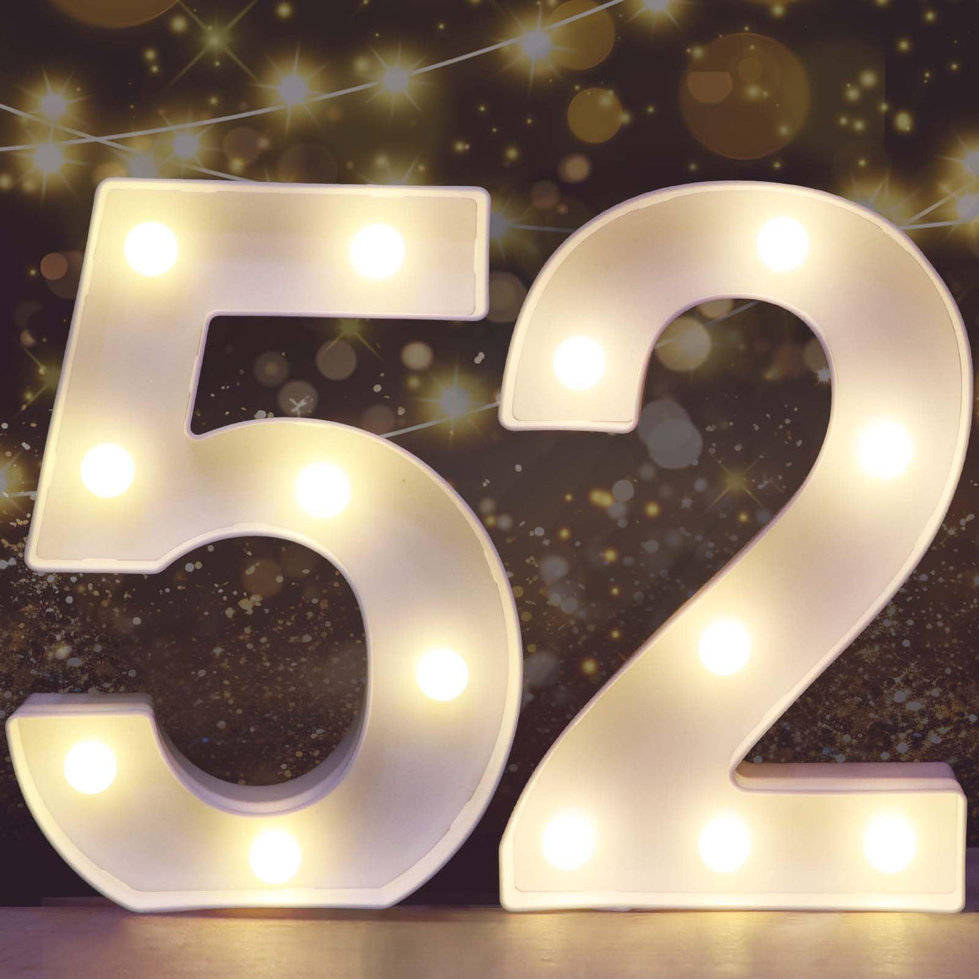 Pooqla Decorative Led Light Up Number Letters, White Plastic Marquee Number Lights Sign For 52Th Birthday Party Wedding Decor Battery Operated Number (52)