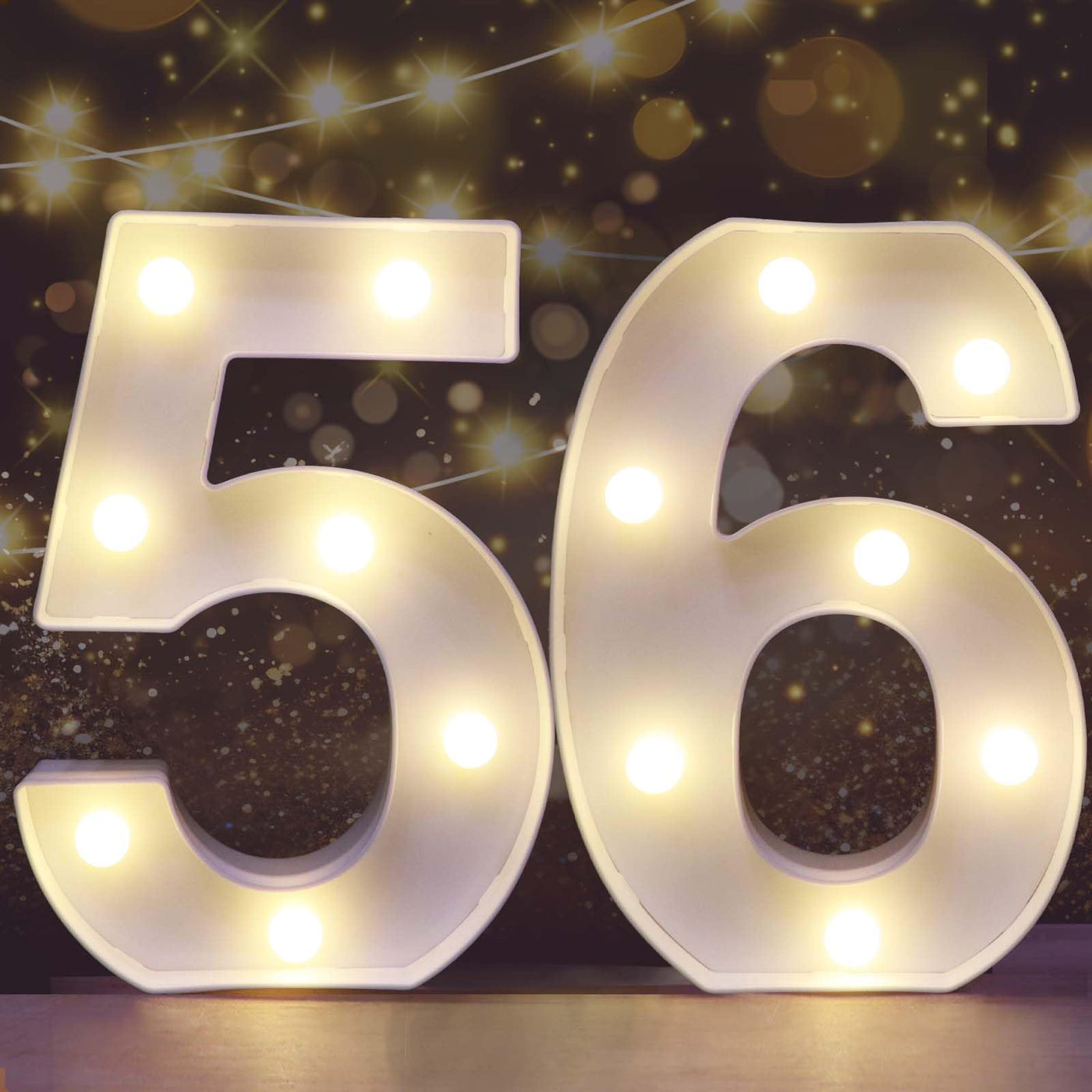 Pooqla Decorative Led Light Up Number Letters, White Plastic Marquee Number Lights Sign For 56Th Birthday Party Wedding Decor Battery Operated Number (56)