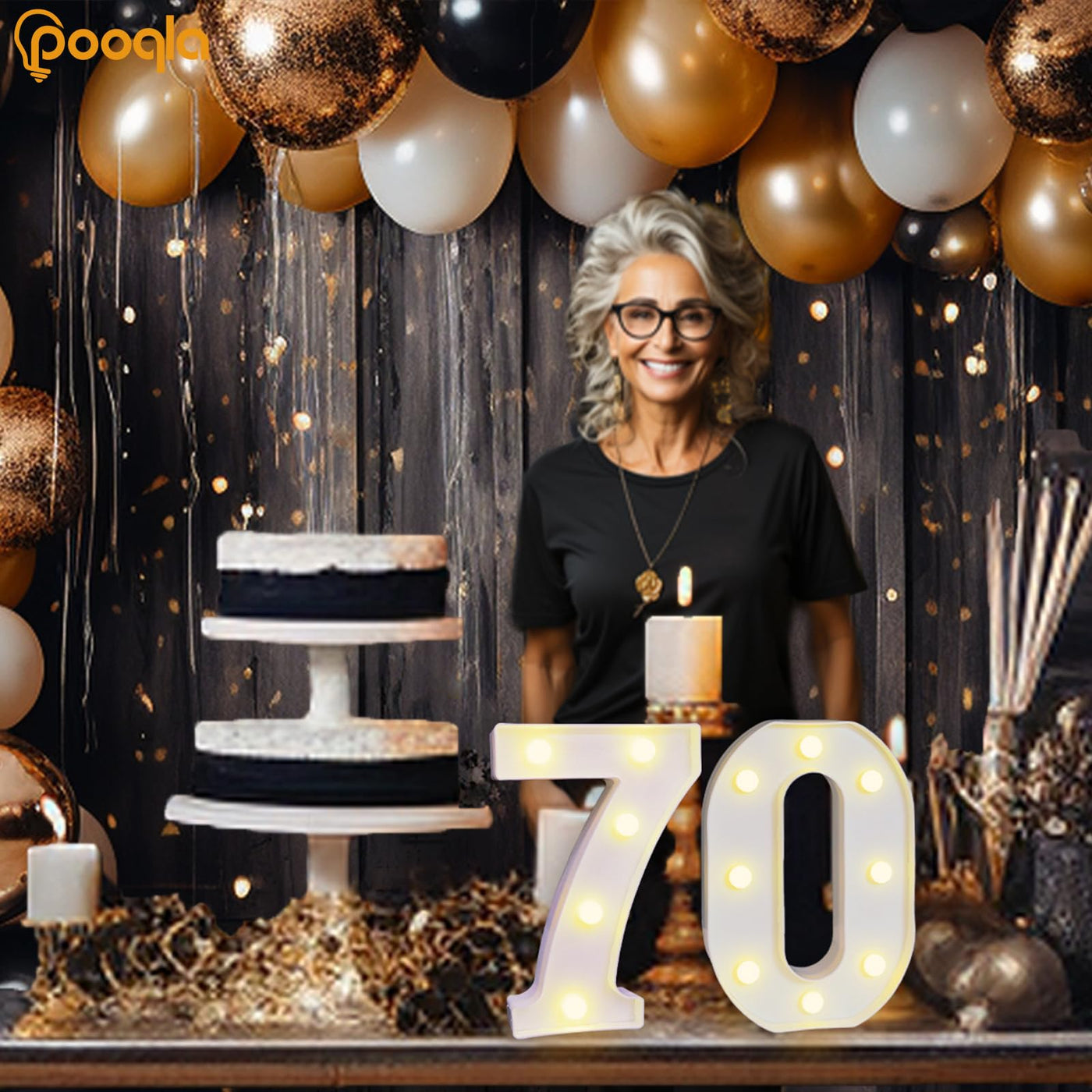 Pooqla Light Up Numbers, Decorative Marquee Number Light Sign for 70th Birthday Party Decor, LED Battery Powered Lighted Sign for Party, Lighted Numbers for Wall Home Anniversary Decor, Number 70