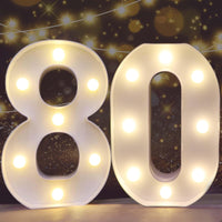 Pooqla Decorative Led Light Up Number Letters, White Plastic Marquee Number Lights Sign For 80Th Birthday Party Wedding Decor Battery Operated Number (80)