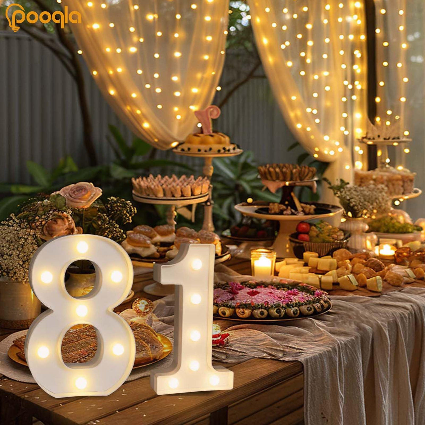 Pooqla Decorative Led Light Up Number Letters, White Plastic Marquee Number Lights Sign For 81Th Birthday Party Wedding Decor Battery Operated Number (81)