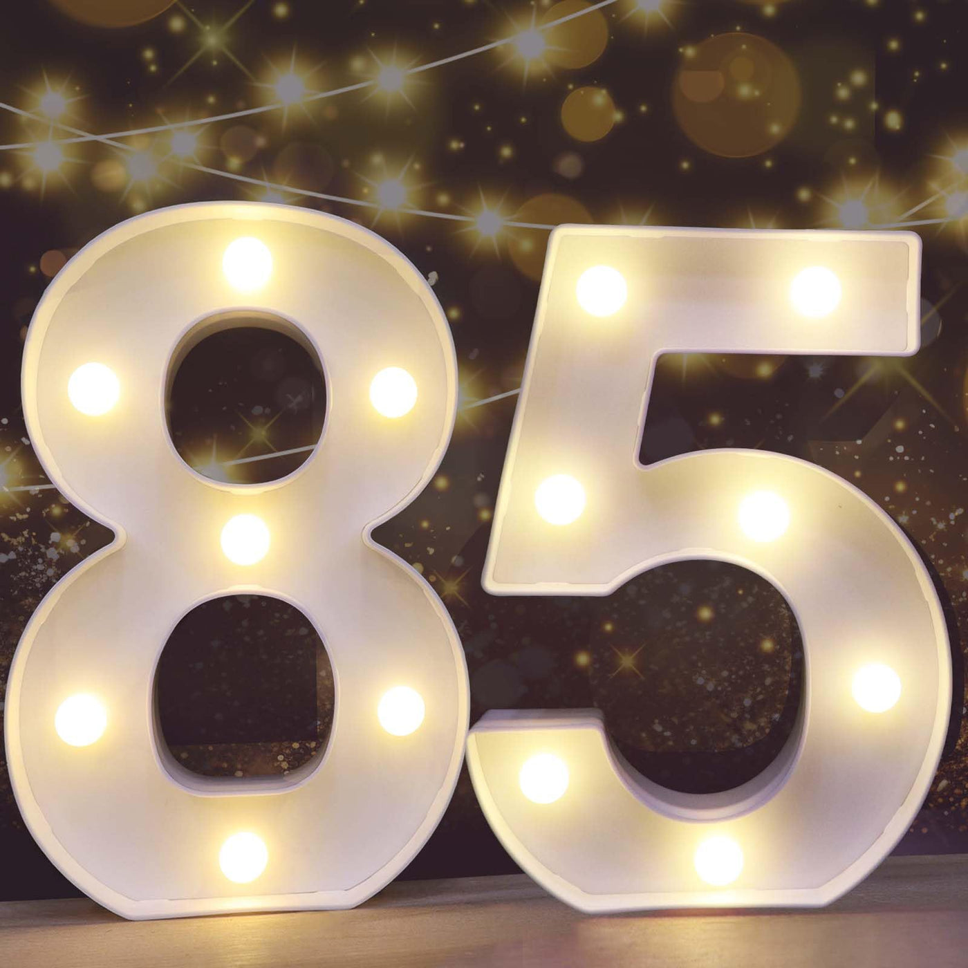 Pooqla Decorative Led Light Up Number Letters, White Plastic Marquee Number Lights Sign For 85Th Birthday Party Wedding Decor Battery Operated Number (85)