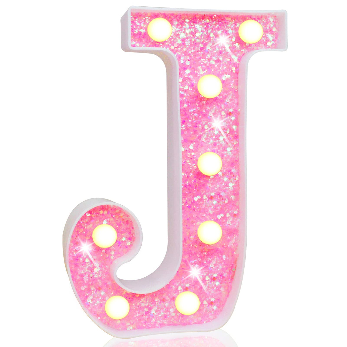 Pooqla LED Marquee Letter Lights, Light Up Pink Letters Glitter Alphabet Letter Sign Battery Powered for Night Light Birthday Party Wedding Girls Gifts Home Bar Christmas Decoration, Pink Letter J