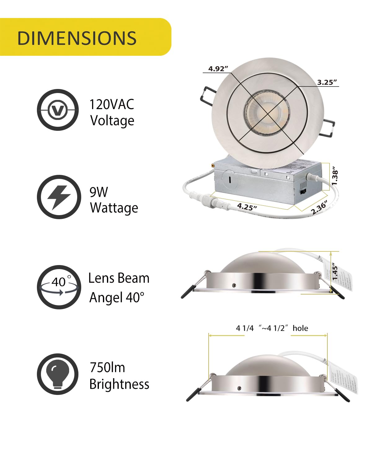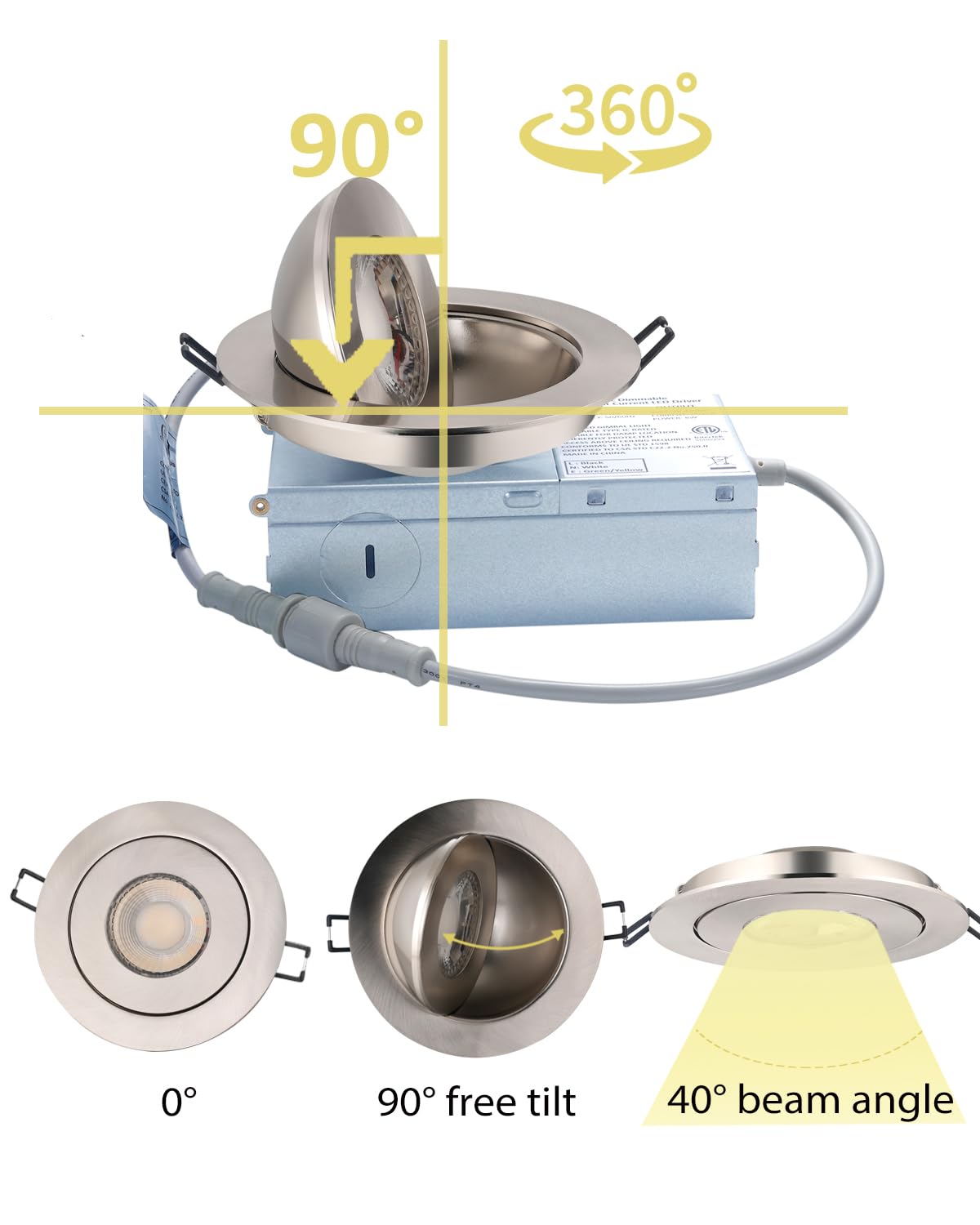 Popanu 4-Inch Gimbal Led Recessed - 4 In Lighting 6Pack Canless Brushed Nickel Trim 90 Tilt Swivel Led Eyeball Wafer Slope Ceili