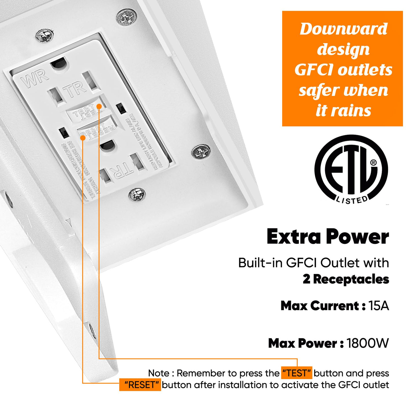 Our advanced white outdoor porch light with GFCI outlet brings your conveniences and surprises!