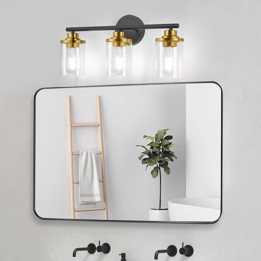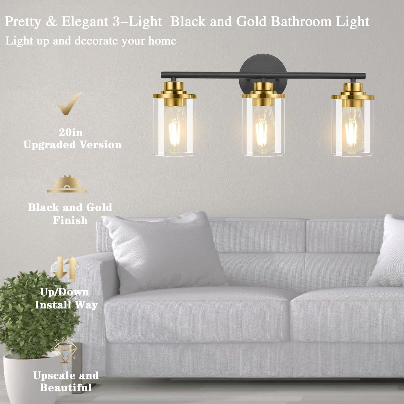 Porphyions Bathroom Light Fixtures,Vanity Lights,Black And Gold Bathroom Lights Over Mirror,Gold Black Vanity Light For Bathroom,20'' Black Gold 3-Light Modern Bathroom Sconce