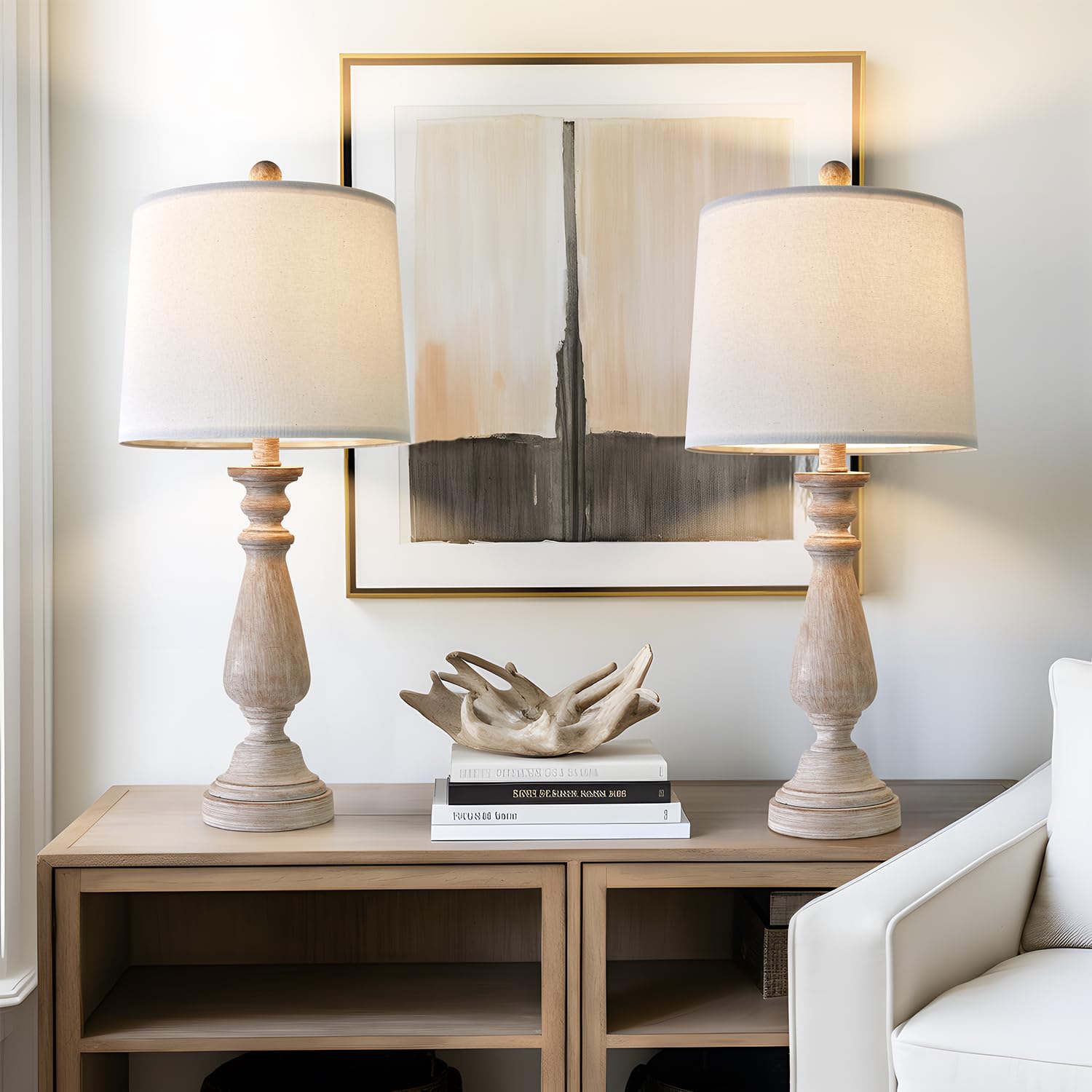 Portres 24.5'' Mid Century Table Lamp Set Of 2 For Living Room Farmhouse Linen Bedside Lamps For Bedroom Kids Room Dorm Office R