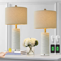 Portres 24’’ Farmhouse 3-Way Dimmable Touch Ceramic Table Lamp Set Of 2 For Bedroom White Bedside Lamps With 2 Usb Charging Ports For Living Room Nightstand Lamp End Table Lamps(2 Bulbs Included)