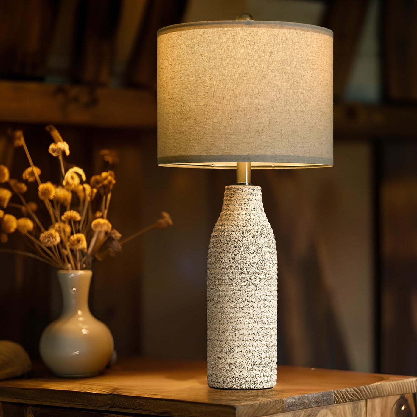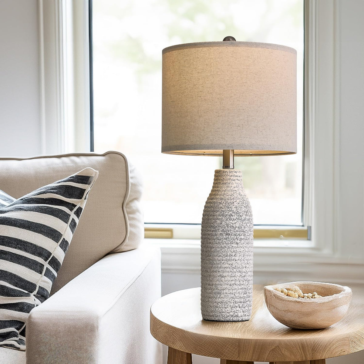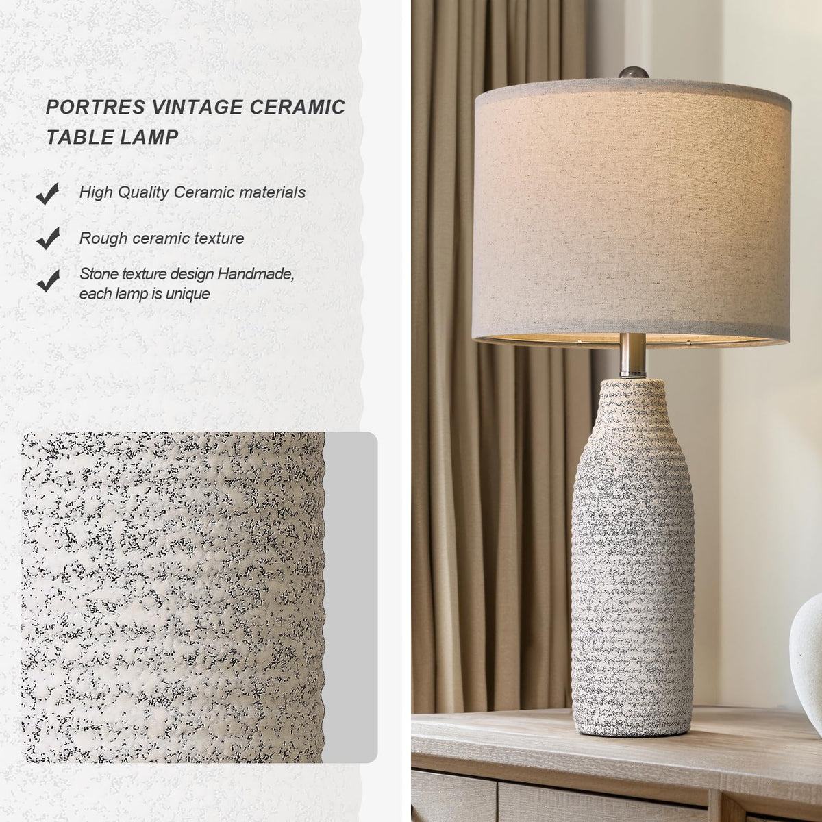 Portres 25'' Ceramic Table Lamp For Bedroom Bedside Lamps For Night Stands Modern Lamps For Living Room With Rotary Switch Gray