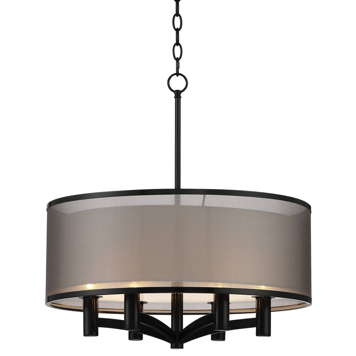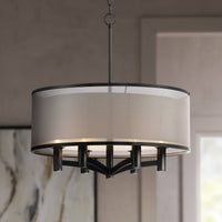 This contemporary pendant from the Possini Euro Design brand offers a chic, sleek look for your living space. The six-light design comes in a beautiful black finish and features a double shade design with a black outer shade over a white inner shade. The resulting look is an elegant design perfect for a living room, dining room, or kitchen.