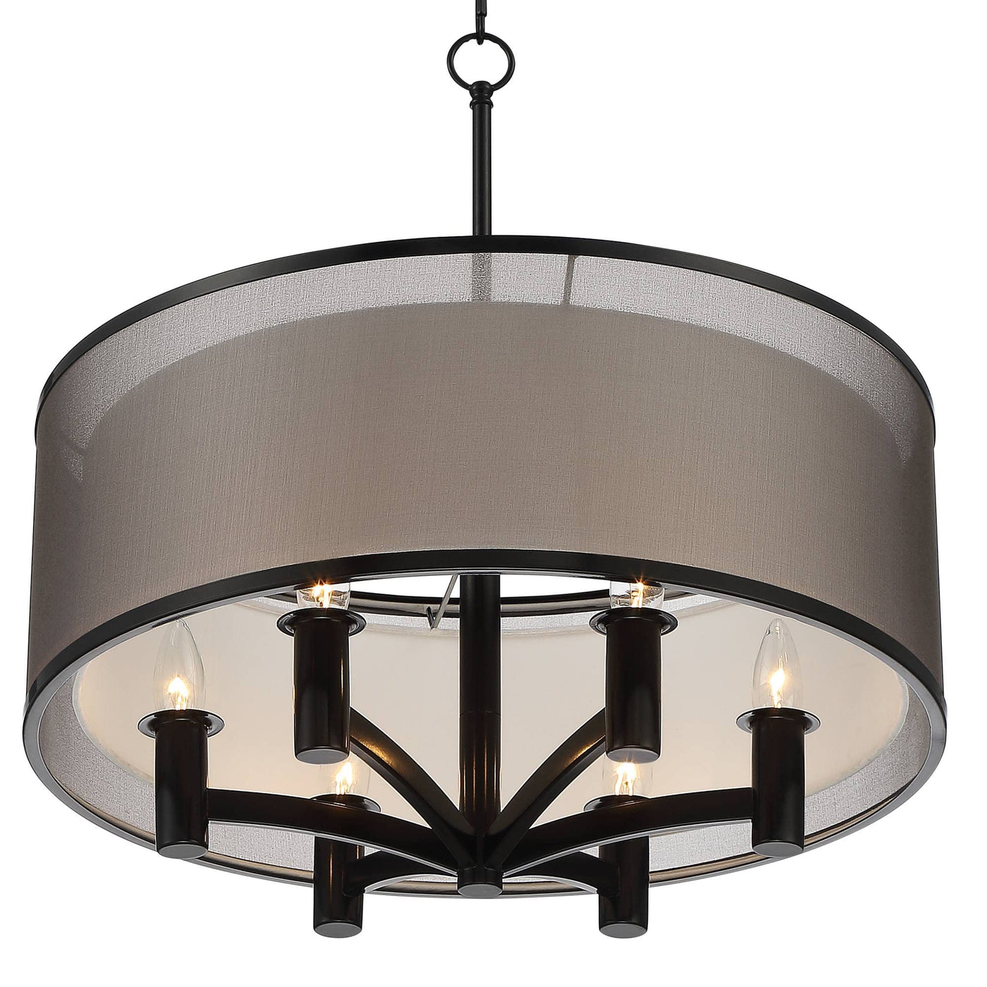- **Sophisticated Design**: This pendant chandelier features a modern black finish and a striking double shade design, enhancing the ambiance of any space with its elegant silhouette.