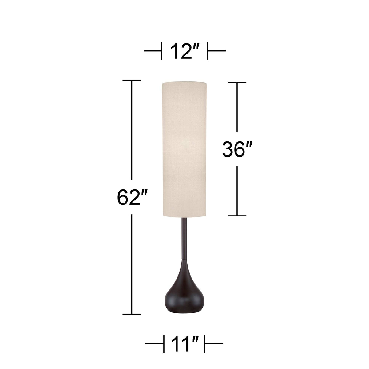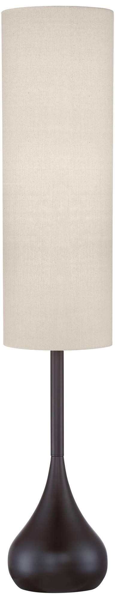 Possini Euro Design Mid Century Modern Retro Floor Lamp Standing 62'' Tall Dark Bronze Metal Droplet Off-White Cotton Cylinder S