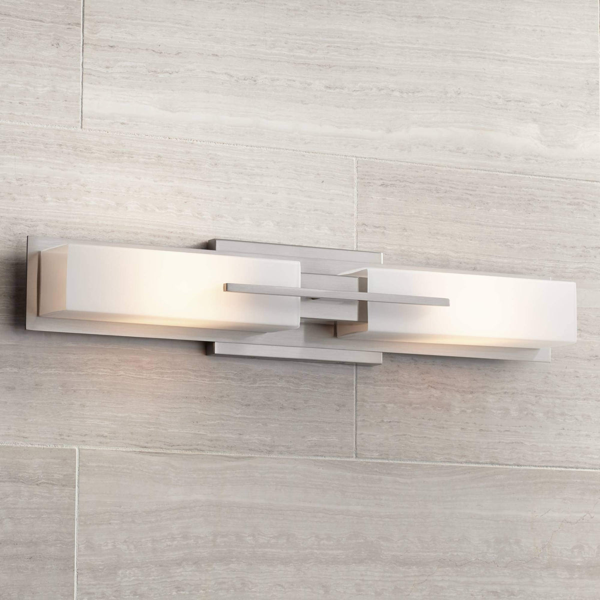 Possini Euro Design Midtown Mid Century Modern Wall Mount Light Brushed Nickel Silver Metal 23 1/2'' Wide 2-Light Vanity Fixture
