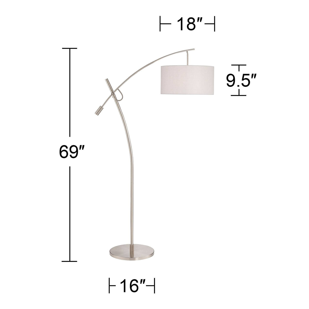 Possini Euro Design Modern Standing Arc Floor Lamp Adjustable Boom Arm 69'' Tall Brushed Nickel Off White Linen Fabric Drum Shad