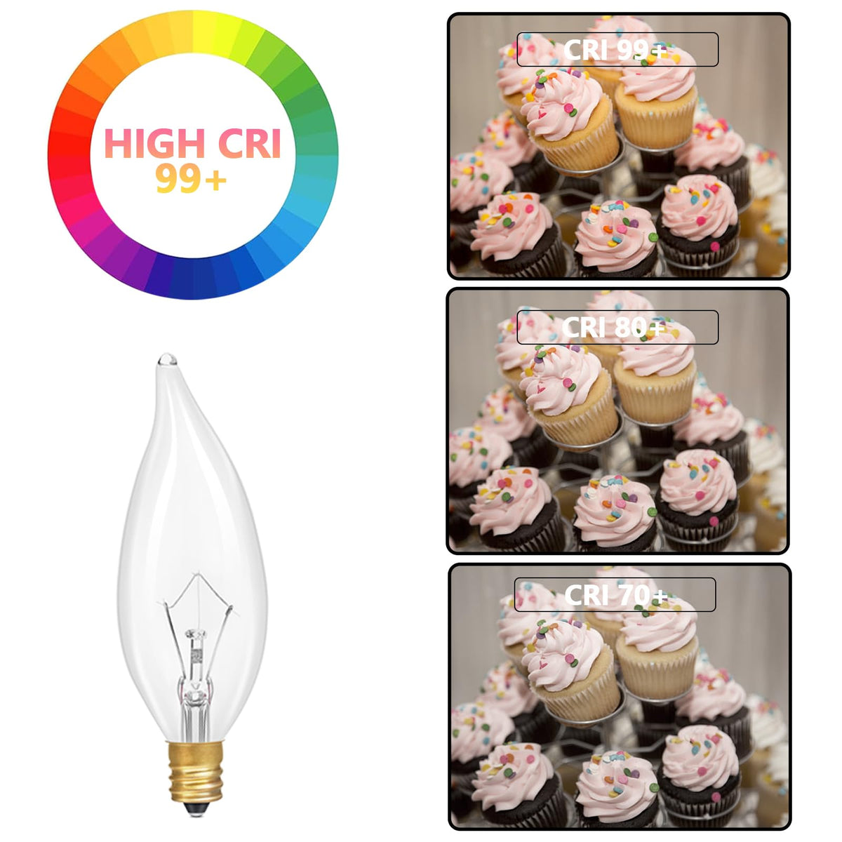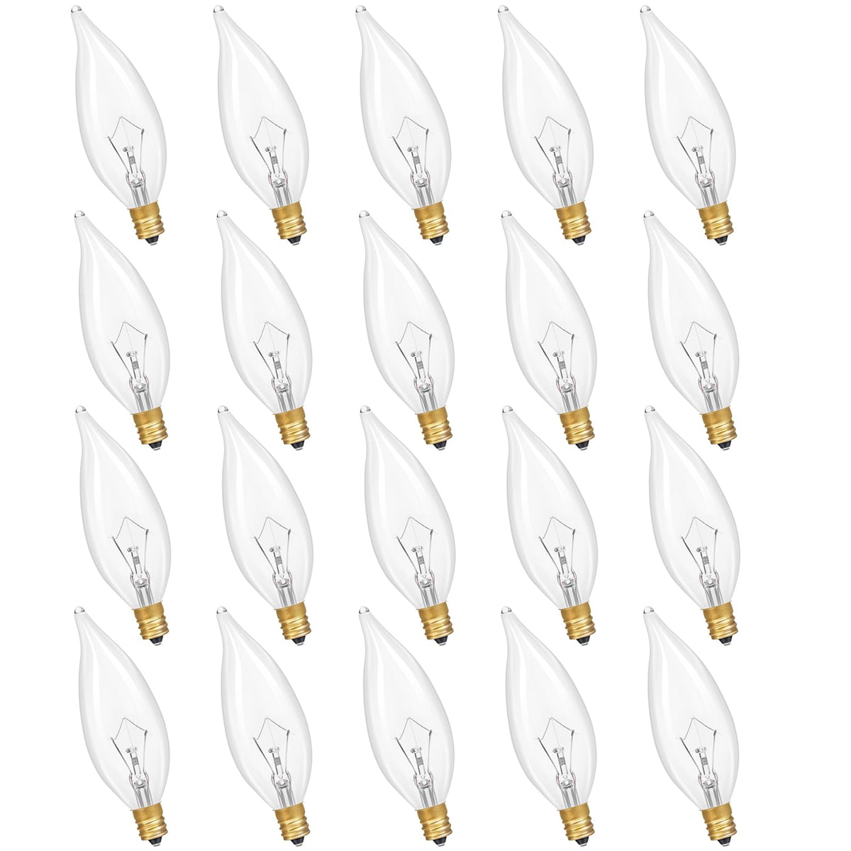 Q: What types of fixtures are compatible with these E12 bulbs?A: These bulbs are compatible with E12 base fixtures, making them suitable for chandeliers, ceiling fans, wall sconces, and various decorative lighting applications.