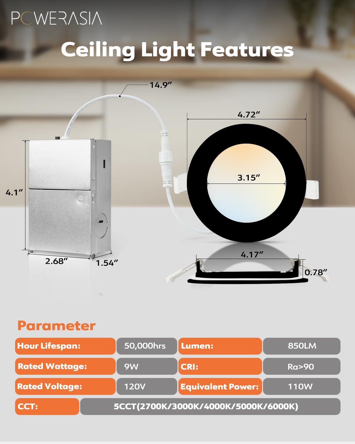 - **Maximum Safety and Assurance**: Certified to ETL and Energy Star high standards, these recessed light fixtures ensure reliability and safety in your home. Backed by a two-year warranty, POWERASIA offers exceptional customer support for peace of mind.