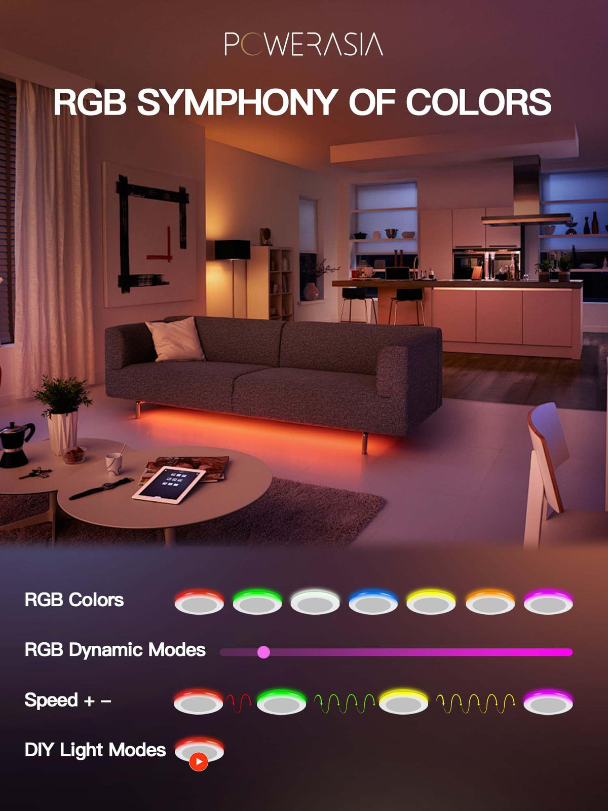 Q: What are the different light modes available with this recessed lighting?A: The POWERASIA Smart LED Recessed Lighting features three light modes: a conventional downlight for daily use, a night light mode suitable for bedrooms, and an RGB mode for entertainment or parties. You can easily switch between these modes using the remote control or the app.