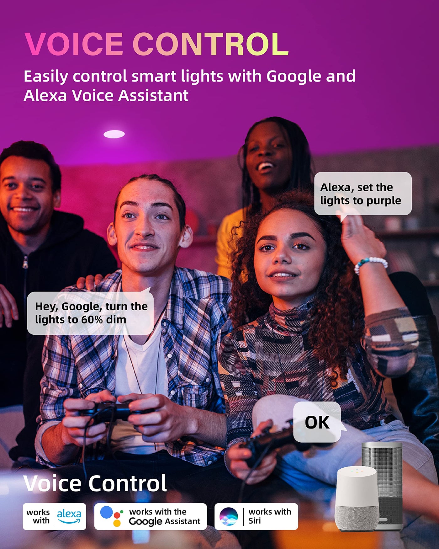 Voice Control: Compatible with Alexa and Google Assistant, allowing hands-free operation for effortless control.