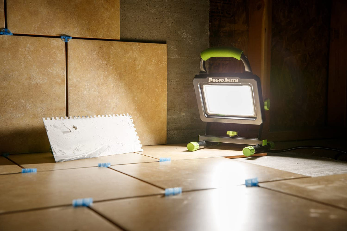 The 7000 Lumen LED Work Light from PowerSmith provides brilliant lighting for you next Project! Perfect for shedding light on your next flooring, paint, drywall, or remodeling project. Light up your Garage, Attic or Crawlspace. Extend the day on your backyard sports and hobbies. PowerSmith leads the way with the most lumens for your dollar on the market. A sealed power switch is perfect for Indoor or Outdoor Use! A 5 ft Power Cord makes setup a breeze. Features All Metal Construction and Impact Resistant Glass Lens to withstand the most demanding conditions!