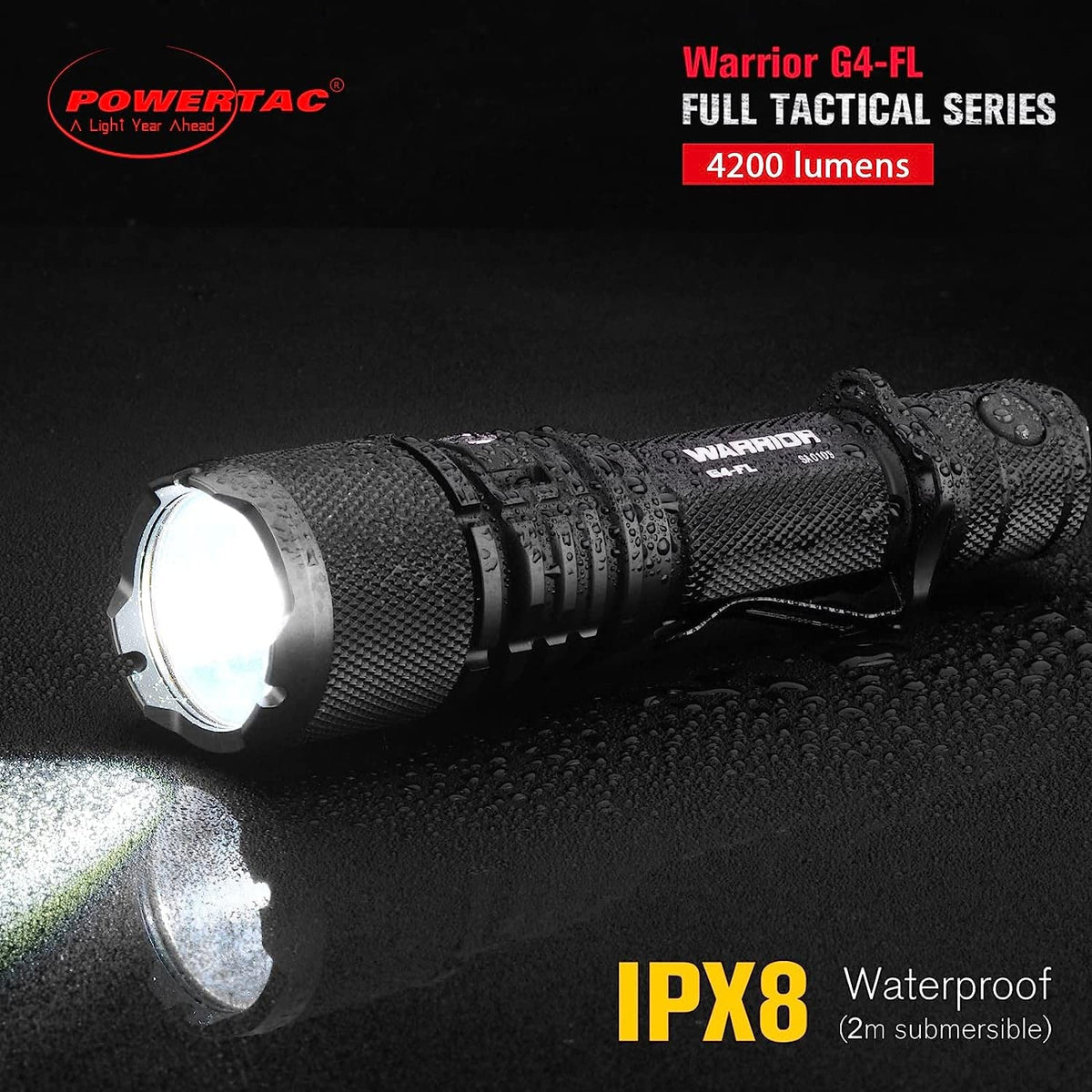 Powertac Warrior G4-Fl 4200 Lumen (Wide Beam) Tactical Handheld Flashlight High Lumen, Waterproof, Usb Rechargeable Flashlight A