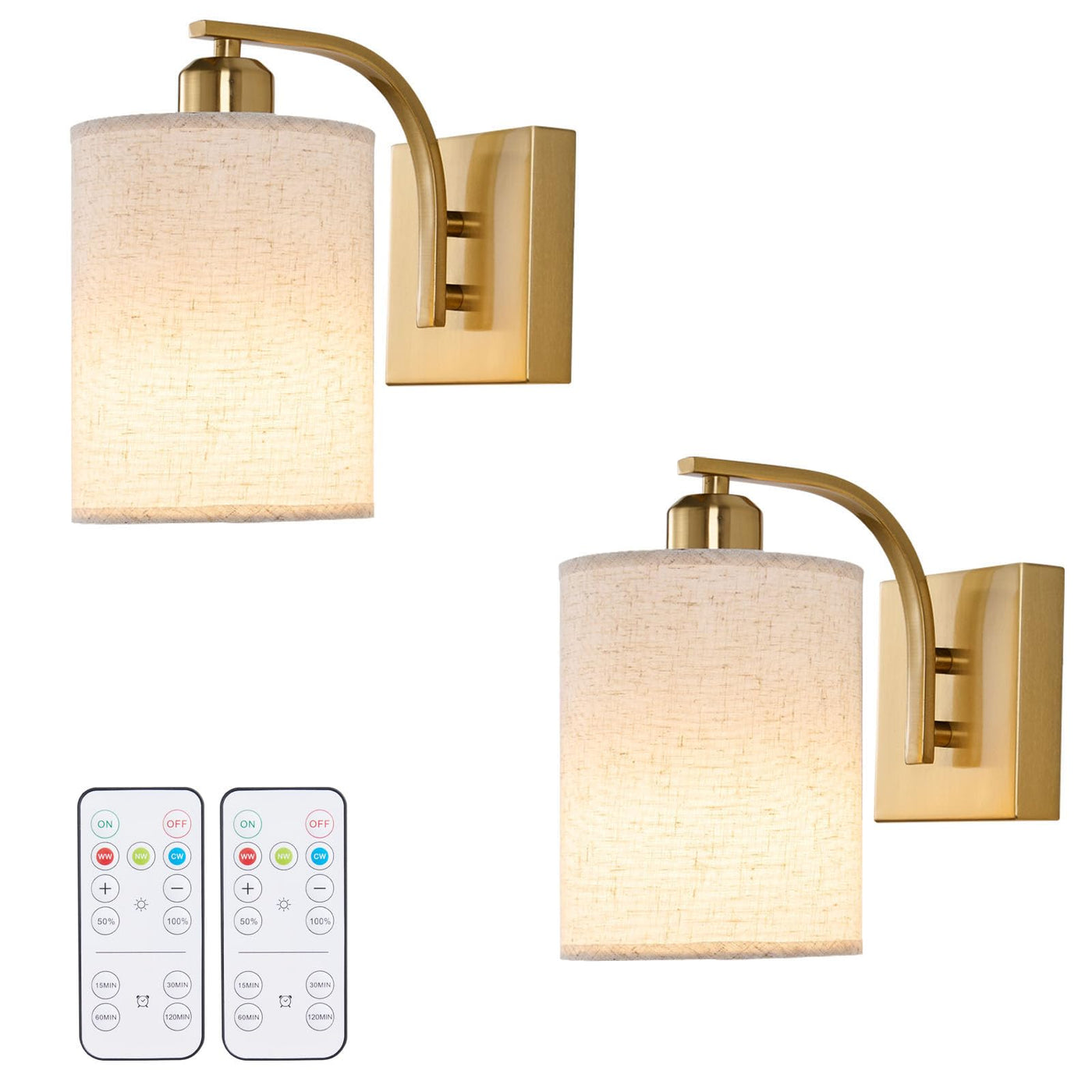 Powfloven Gold Rechargeable Battery Operated Wall Sconces Set Of 2 With Remote, Wireless Dimmable Battery Powered Led Wall Light