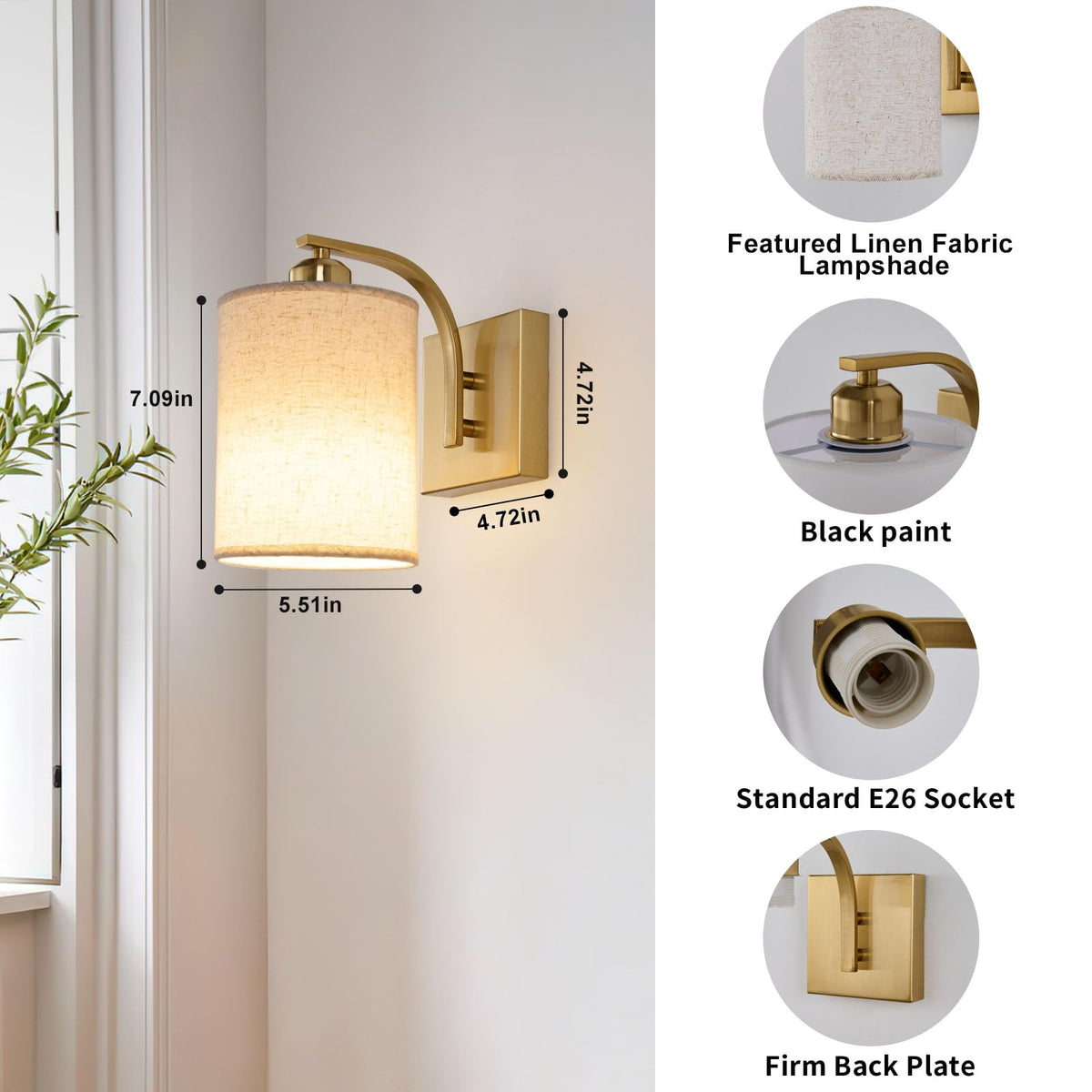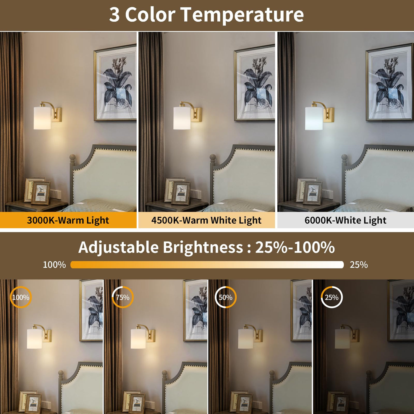 Powfloven Gold Rechargeable Battery Operated Wall Sconces Set of 2 with Remote, Wireless Dimmable Battery Powered LED Wall Lights, Cordless Wall Lighting Lamp Fixture For Bedroom Living Room Wall sconce X2 Light Bulb X2 Remote X2 Instruction X2