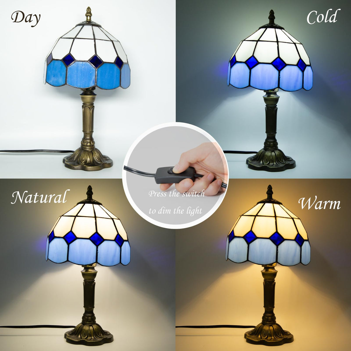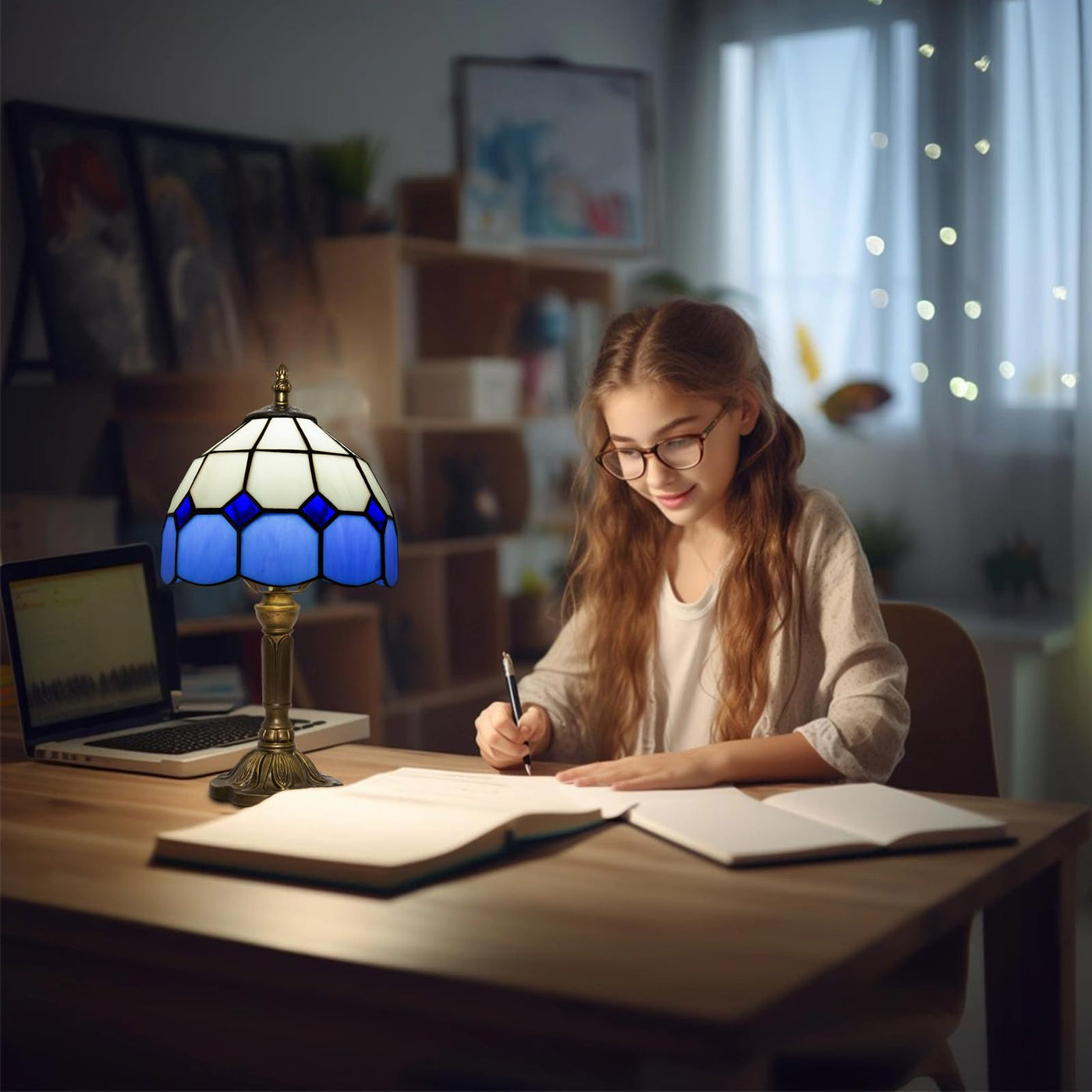 Ppbmocw Stained Glass Lamp,8X14 Inches Small Tiffany Lamp For Bedside,Antique Office,Living Room (B Blue Grid)