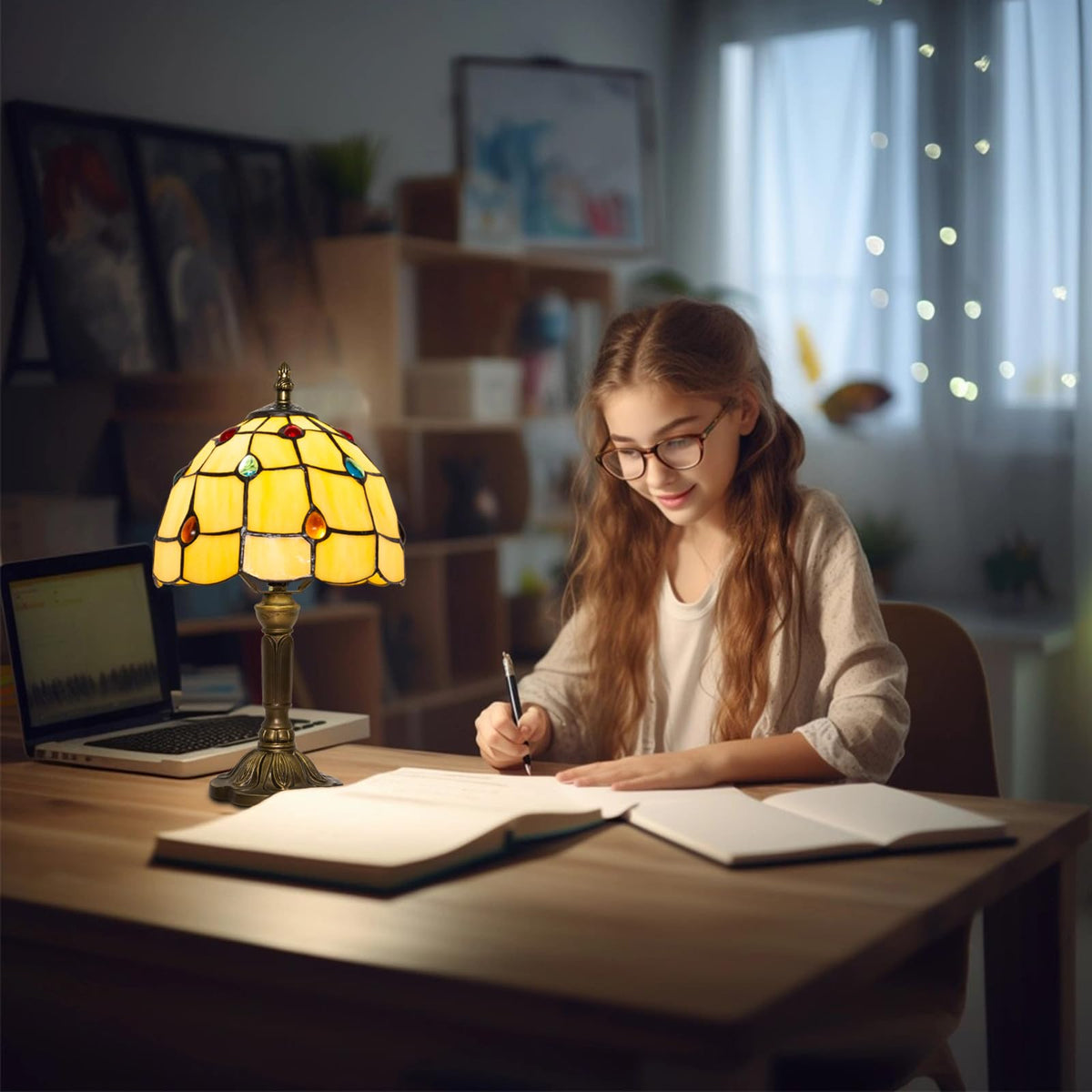 Q: What are the dimensions and weight of the lamp?A: The Ppbmocw Small Tiffany Lamp measures approximately 7.99 inches in length and width, and it weighs around 1.5 pounds, making it a compact and lightweight addition to your home.