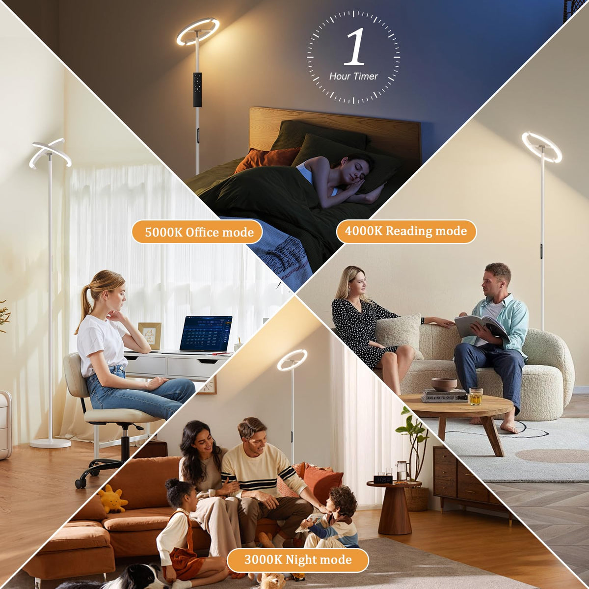 Preeotti Led Floor Lamp - 73.6'' Tall Modern Standing Lamp With 2 Rotatable Lights, Remote & Touch Control, 36W Bright Stepless