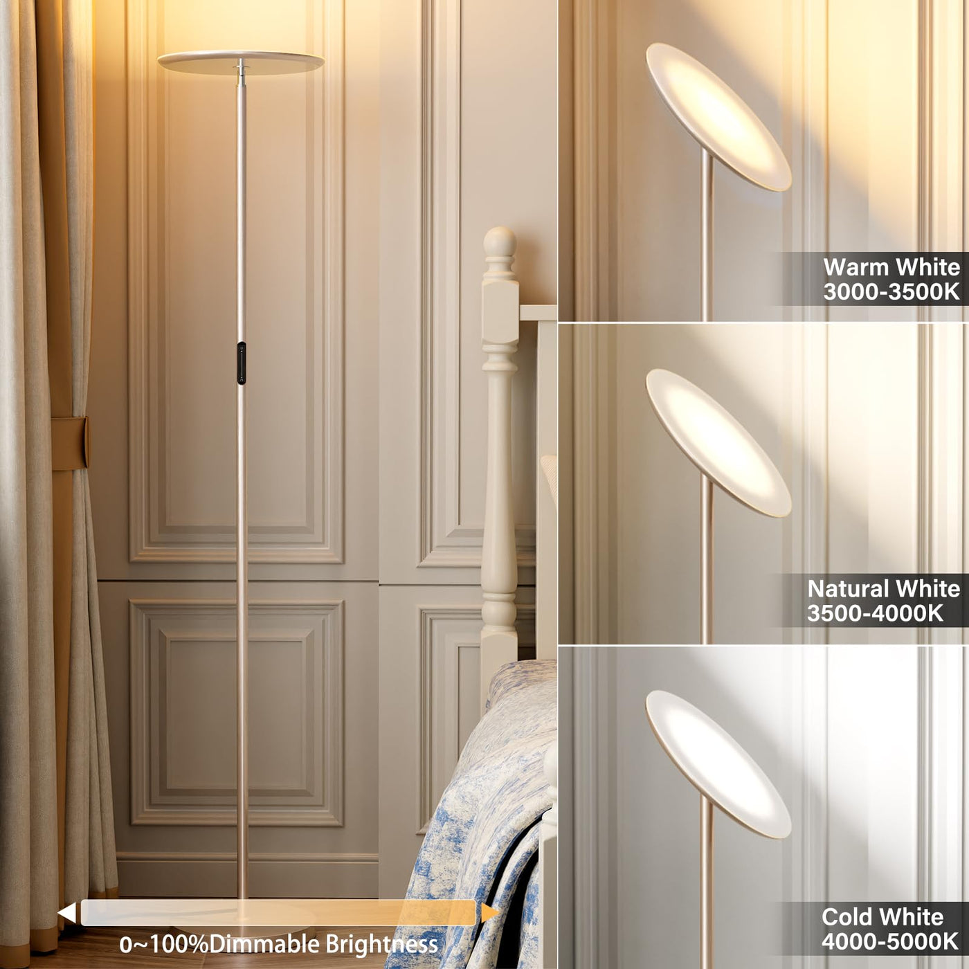 Preeotti Led Floor Lamp With Remote, 36W/3000-5000K,Touch Control, Fully Dimmable, Adjustable Brightness, 69 In, Sand Golden