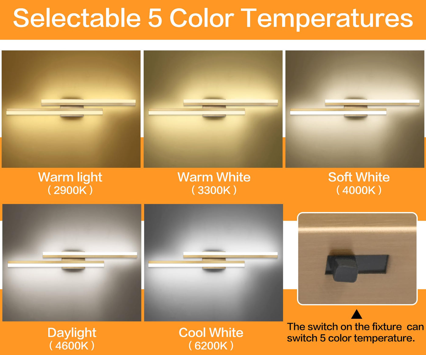 5 Color Changeable Vanity light, Dimmable brightness adjustable and warm white/neutral white/cold white temperature to meet your mood.