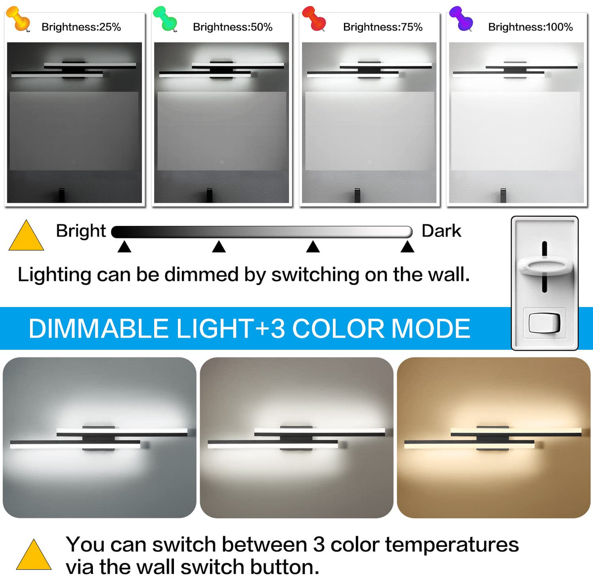 3 Color Changeable Vanity light, Dimmable brightness adjustable and warm white/neutral white/cold white temperature to meet your mood (3000k/4500k/6000k Color Optional).